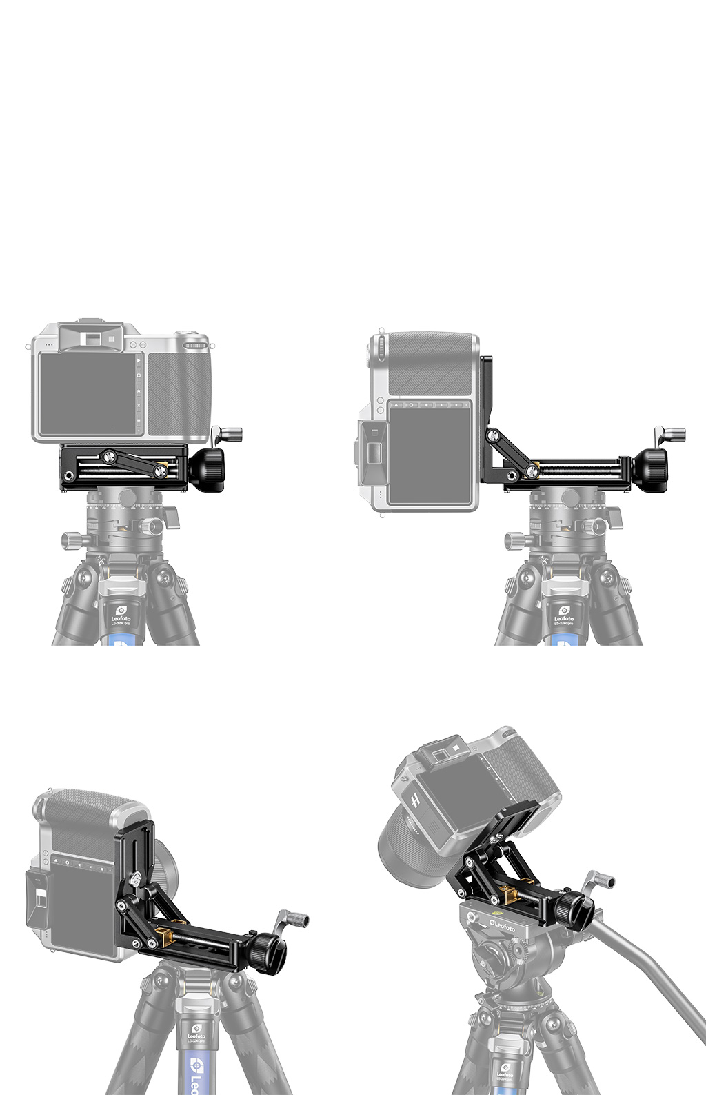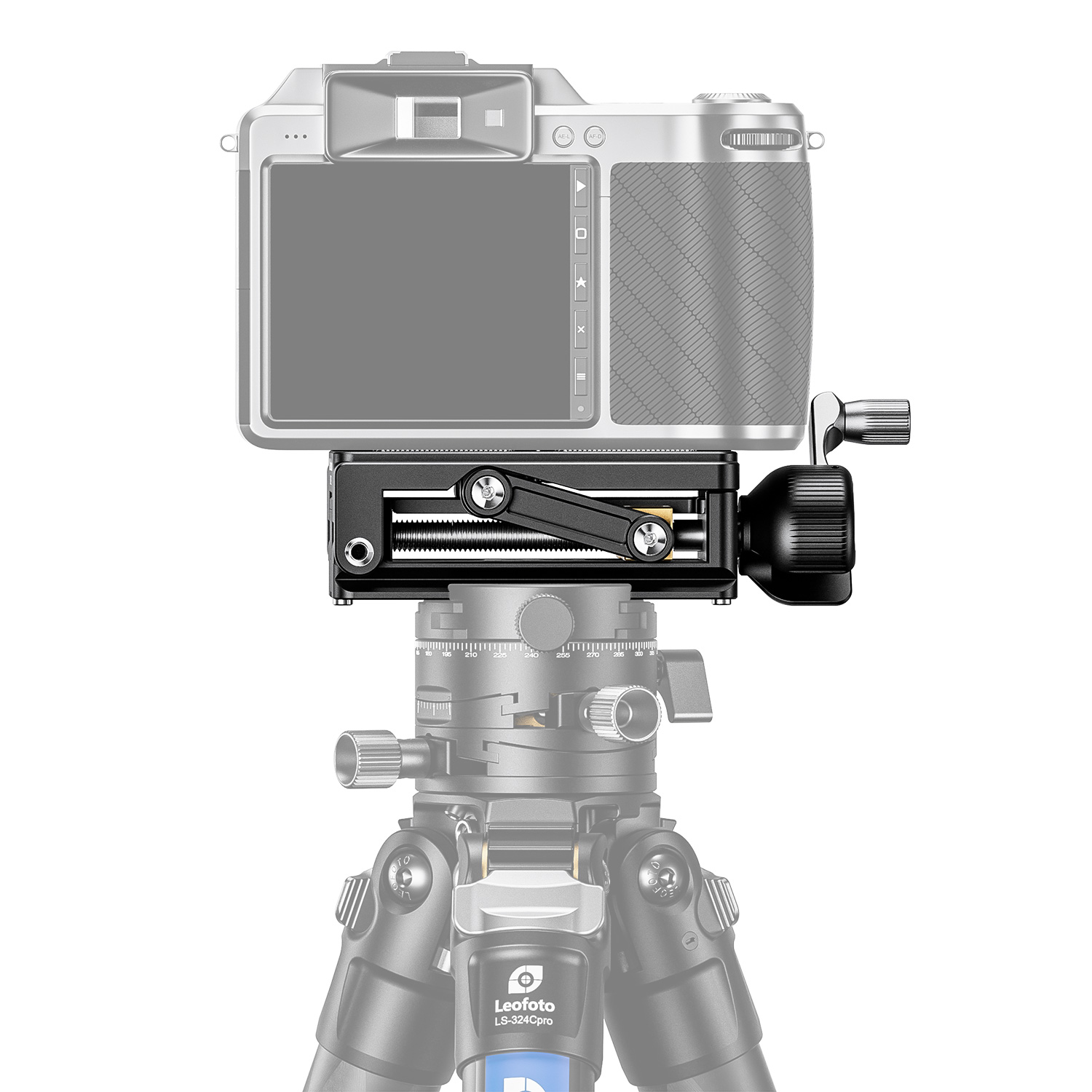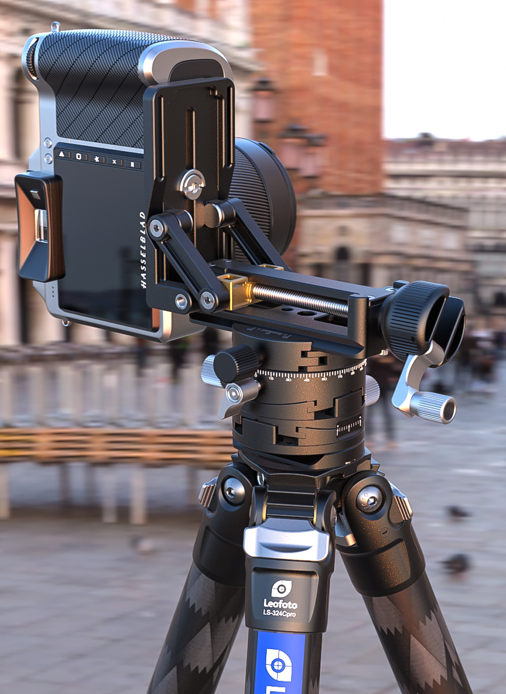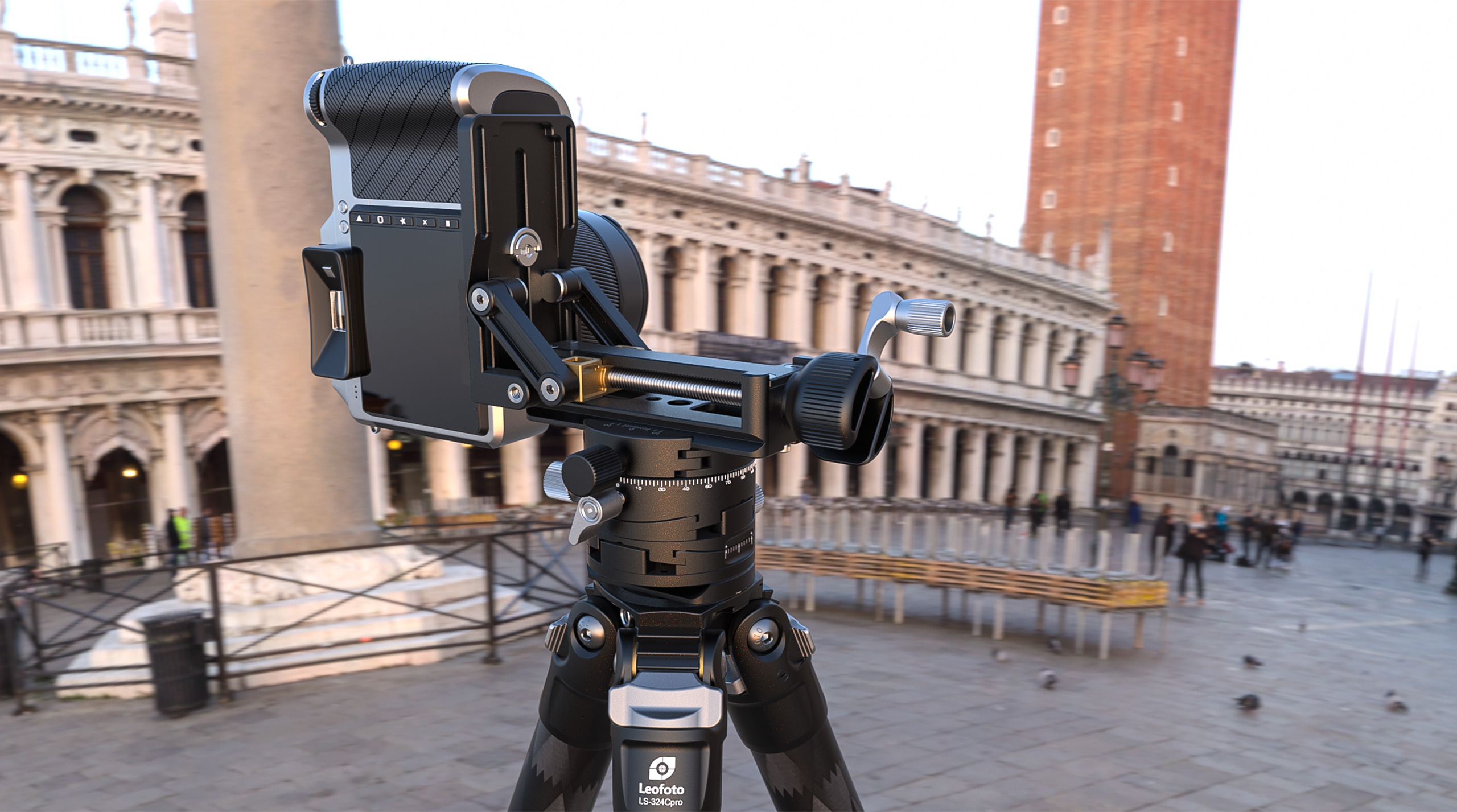 The horizontal, tilt and vertical axes are controlled separately. These mechanisms are located below the camera and allow you to search for the best level before taking pictures. Some photographers use them as inseparable micron motion patella to appreciate their compactness and the extreme accuracy of micron motion, especially in architecture and studios.