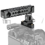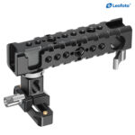 The handle is CNC machined from 6061-T6 aluminum and hard anodized making it light weight and durable. It features various mounting sockets along the handle that allow simultaneously mounting microphone, LED light, monitor, and other accessories. Overall, the lightweight and practical handle can provide a wide range of mounting points and an excellent shooting experience.
