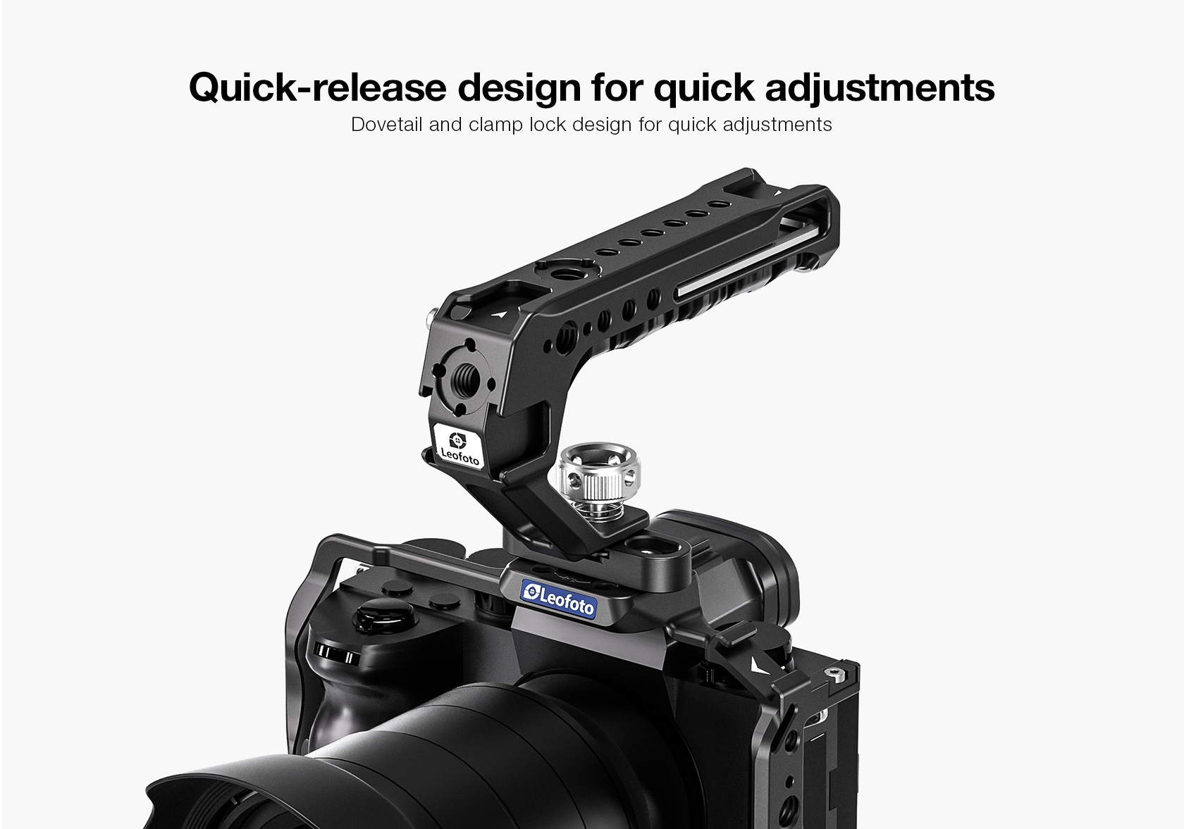 The Leofoto AH-2-3 Top Handle with Cold Shoe is a universal handle with cold shoe, simple and ergonomically designed to offer a comfortable handheld shooting experience. The handle is CNC machined from 6061-T6 aluminum and hard anodized making it light weight and durable and has an ergonomic silicone grip for added comfort. It features various mounting sockets along the handle that allow simultaneously mounting microphone, LED light, monitor, and other accessories. There is also a magnetized allen wrench integrated into the handle for convenient adjustments. Overall, the lightweight and practical handle can provide a wide range of mounting points and an excellent shooting experience.