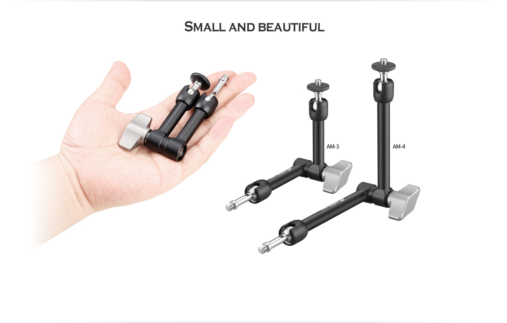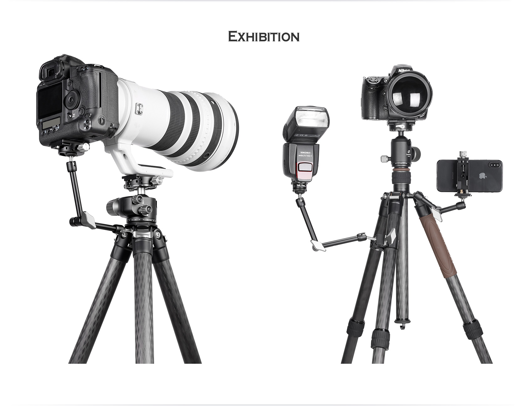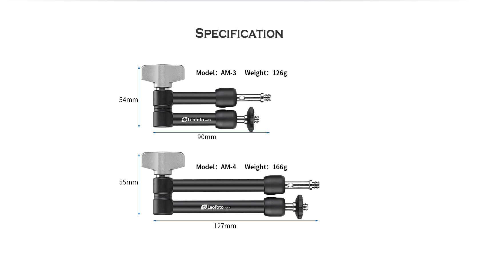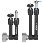 The Leofoto AM Series Versa Magic Arm is a multi-purpose tripod accessory that attaches to the leg of select Leofoto tripods, or other tripods and camera brackets with a 1/4″-20 accessory slot. The magic-arm allows a light, microphone, monitor, smartphone, tablet, or even an additional camera to be affixed to a camera rig without the added bulk of a clamp. Each end of the magic arm features a ball-and-socket joint that rotates 360°, and the center elbow joint locks in any position. The large, easy-to-grip center knob locks all three movements simultaneously for quick and easy setup and repositioning.
