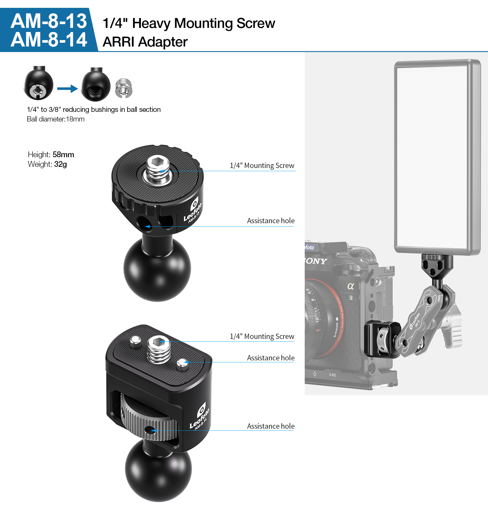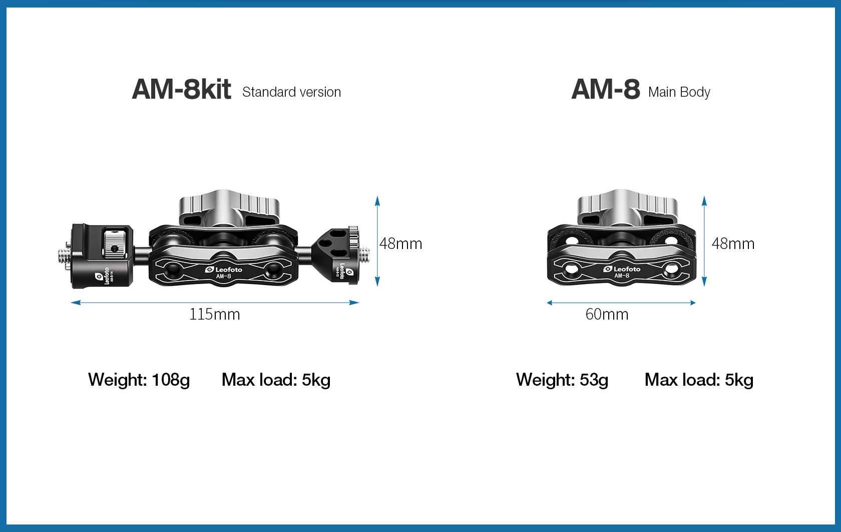 The Leofoto AM-8 Professional Magic Arm is one of the most adaptable magic arms in the industry. The AM-8 main body from the AM-8 kit, can be combined with all the other AM-8 various arm lengths and adapters to create the most ideal setup for the user. With the endless amount of mounting options, this magic arm can be used in a myriad of tasks.