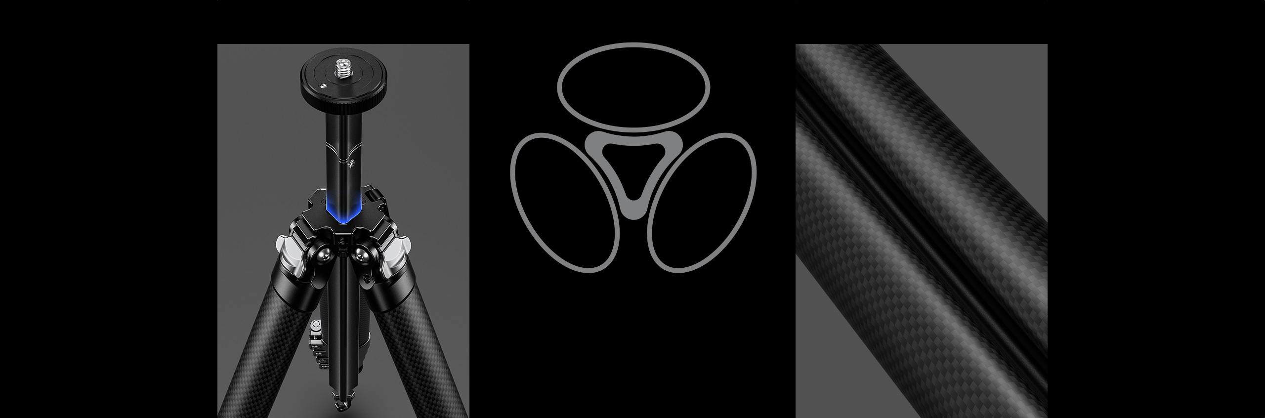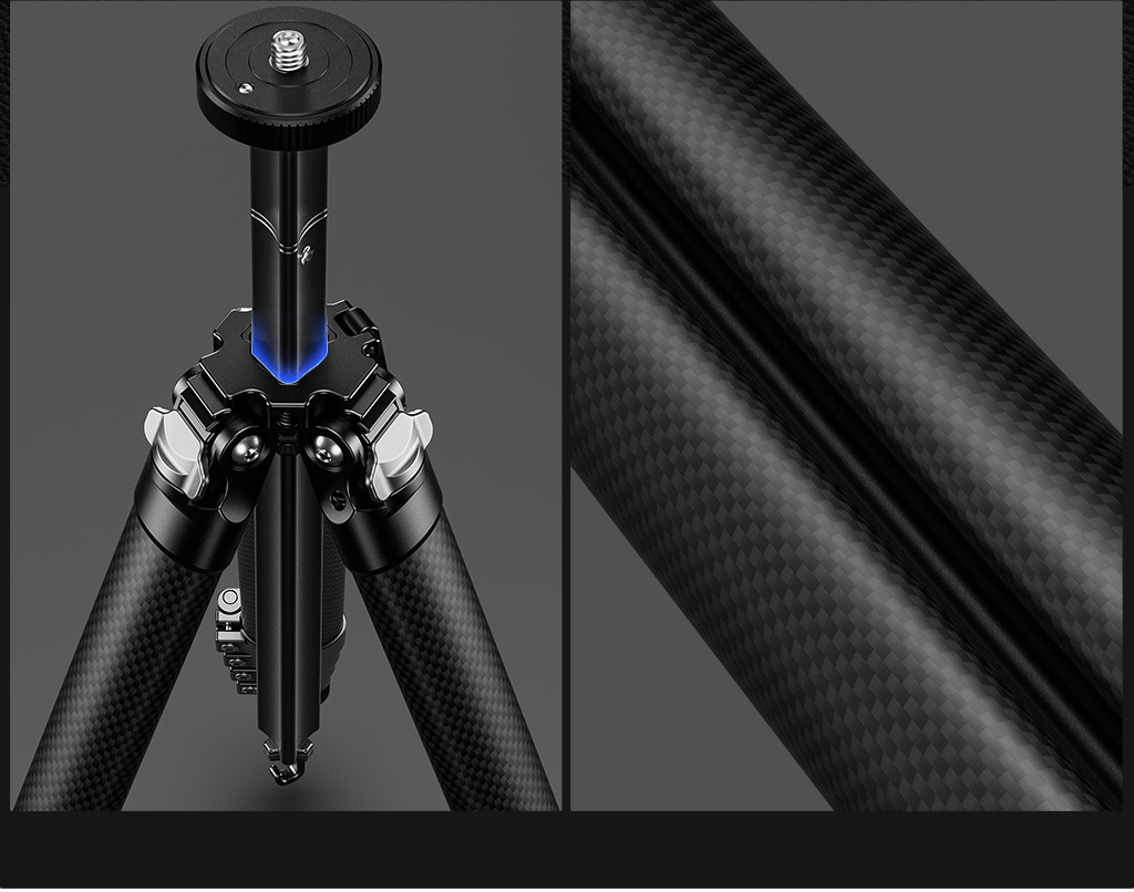 Center column is designed to be Y shaped to reduce the space of the tripod and make the tripod more tight and compact without sacrificing the stability of the tripod.