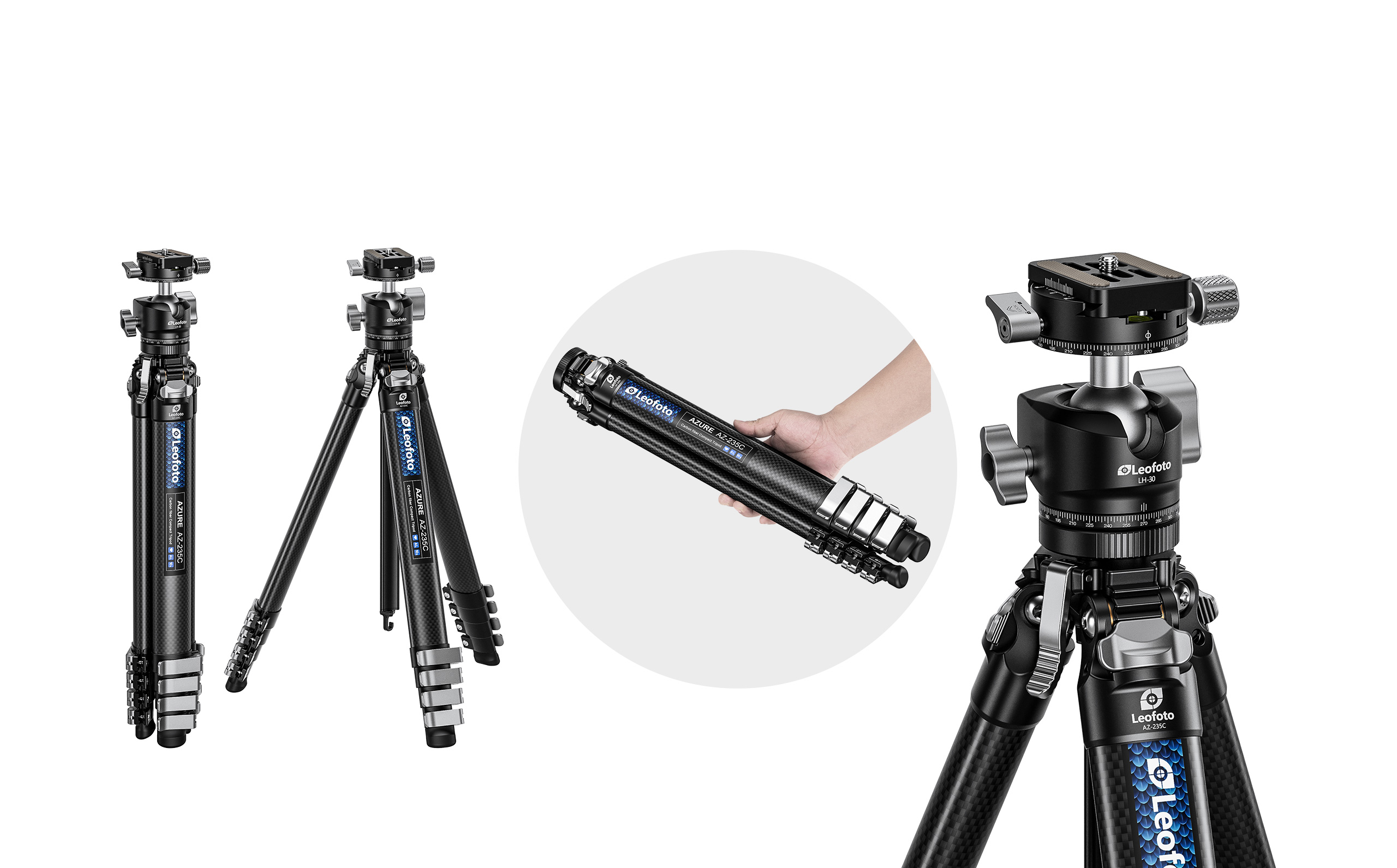 The new Azure tripod series from Leofoto combines state-of-the-art design principles with well thought-out features for photographers who value stability, flexibility and a compact pack size. Whether for outdoor shooting, studio use or ground-level macro photography, Azure tripods are true all-rounders.