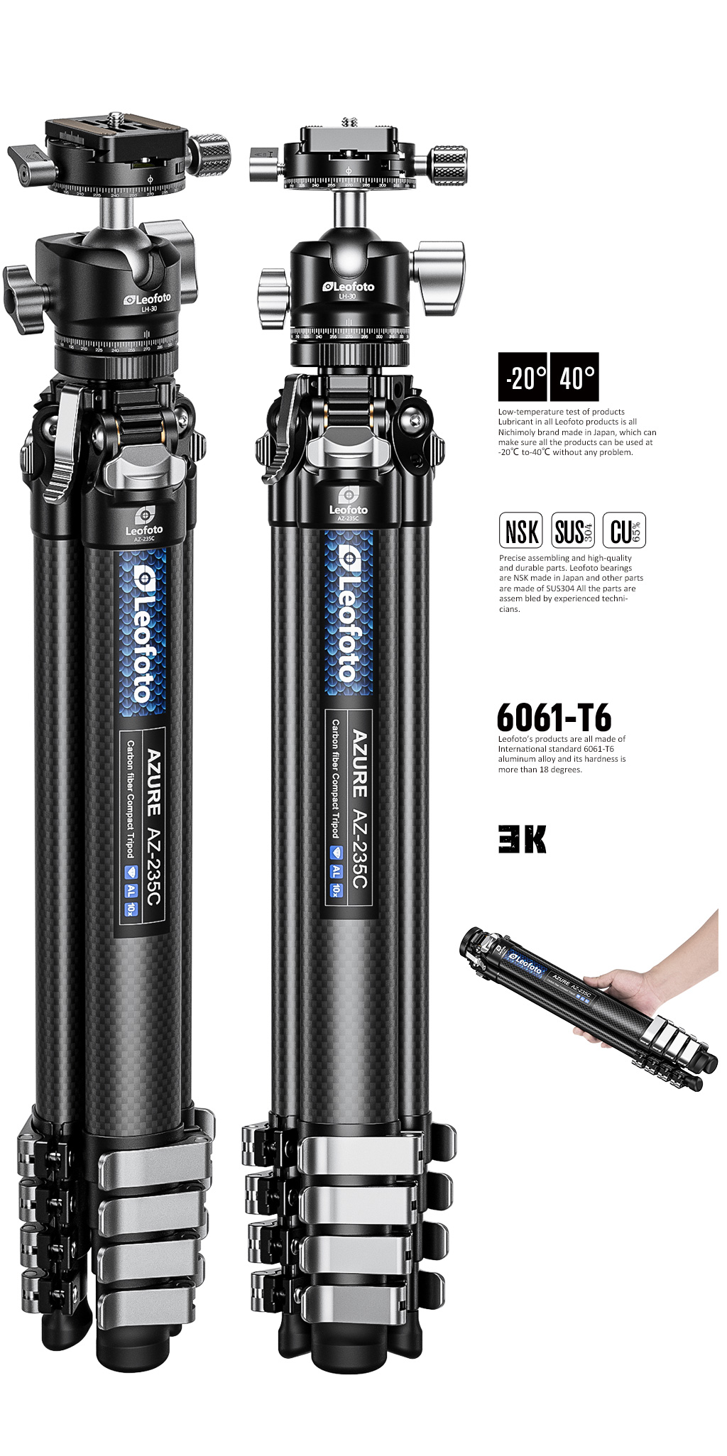 Leofoto AZ-235C AZURE SERIES Ultra-Compact Tripod
