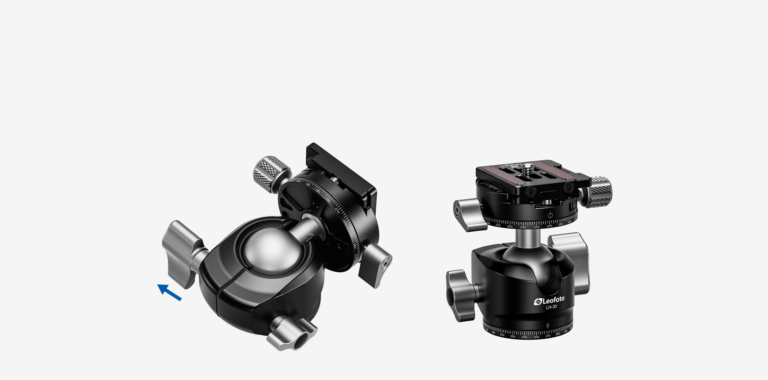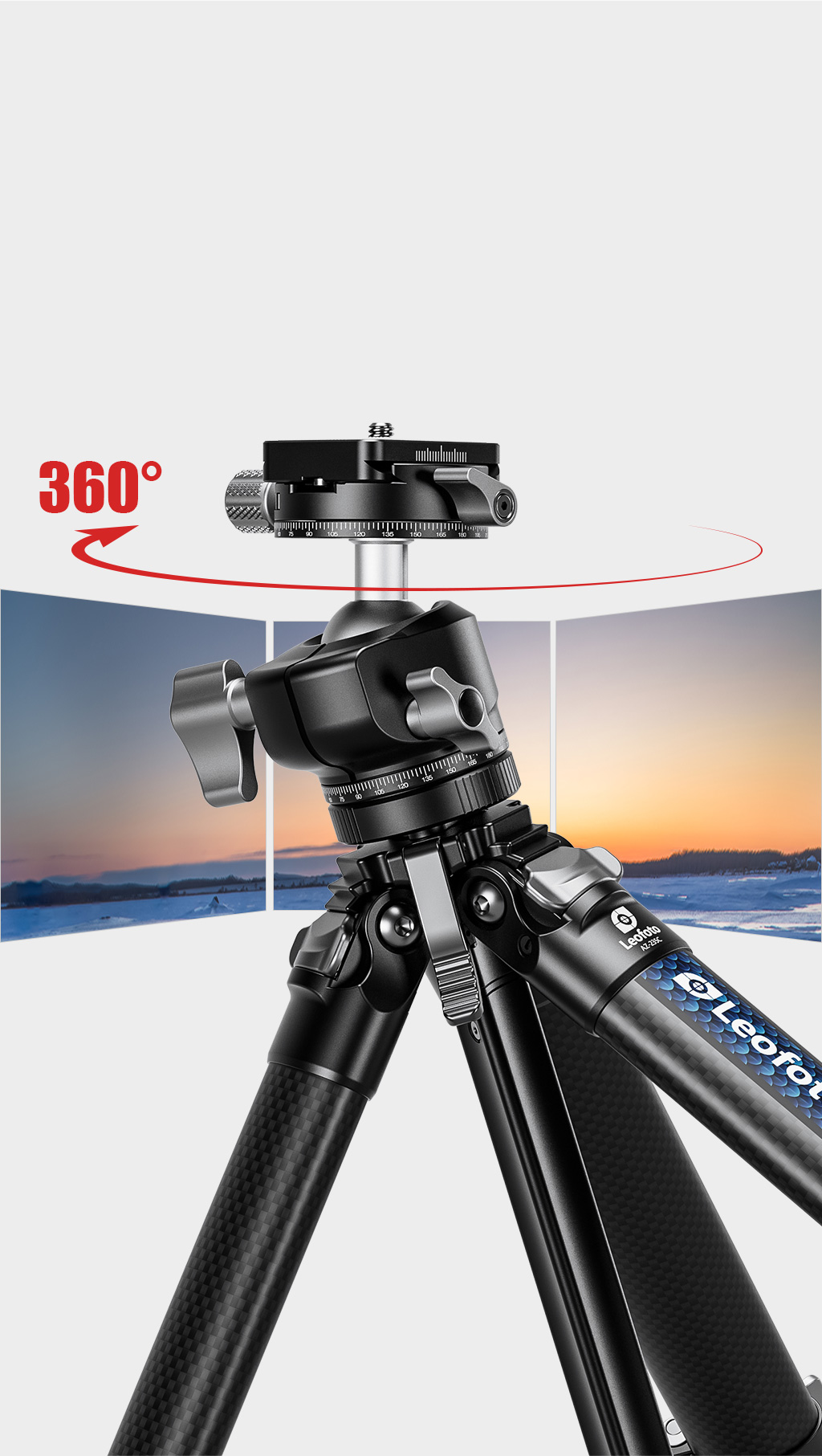 Ergonomic large main locking knob gives easy handling. Low height profile gives better reliability. Precisely machined ball makes the movement silky smooth. .Laser-engraved scale on the panning base for easy and precise control during panorama shooting.