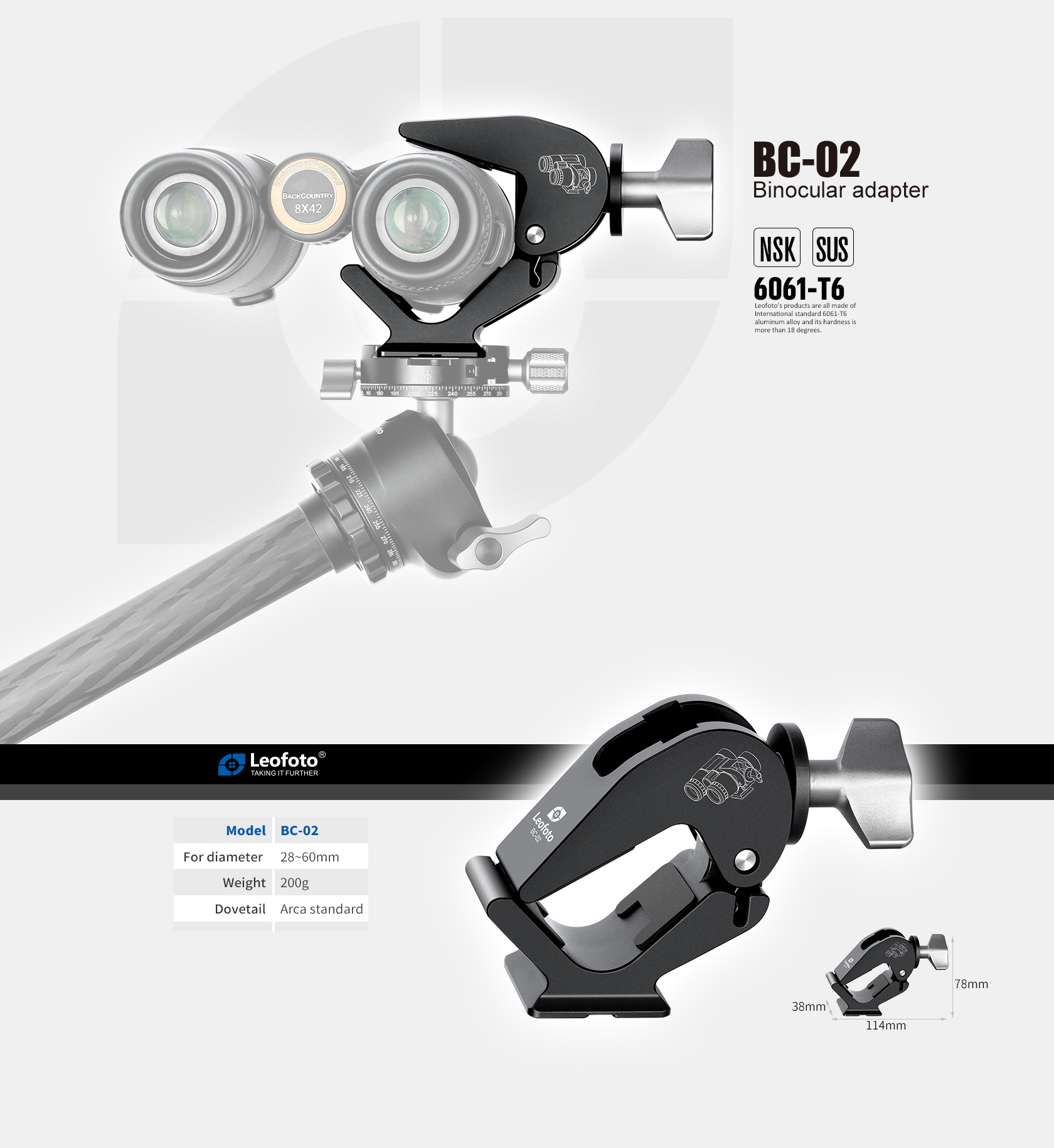 / Leofoto BC-02 Binoculars Adapter /ARCA Style Dovetail Standard For Diameter 28-60mm