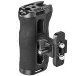 The Leofoto CH-7-1 Side Handle with NATO/Picatinny Rail is designed for mirrorless, digital, and other small cameras to provide a comfortable grip for increased stability with access to accessory mounts for cameramen. It is attached via a NATO/Picatinny clamp to the side of the camera cage. The CH-7-1 features 3/8”-16, 1/4“-20 and cold shoe accessory mounts on top to add a mounting arm, light, mic, strap or other accessories. This side handle is adjustable to fit different cage heights and can quickly switch between left-handed or right-handed orientation with the built-in allen wrench. Made of hard anodized aluminum, this handle features an ergonomic silicone grip to provide filmmakers with a smooth and comfortable shooting experience.