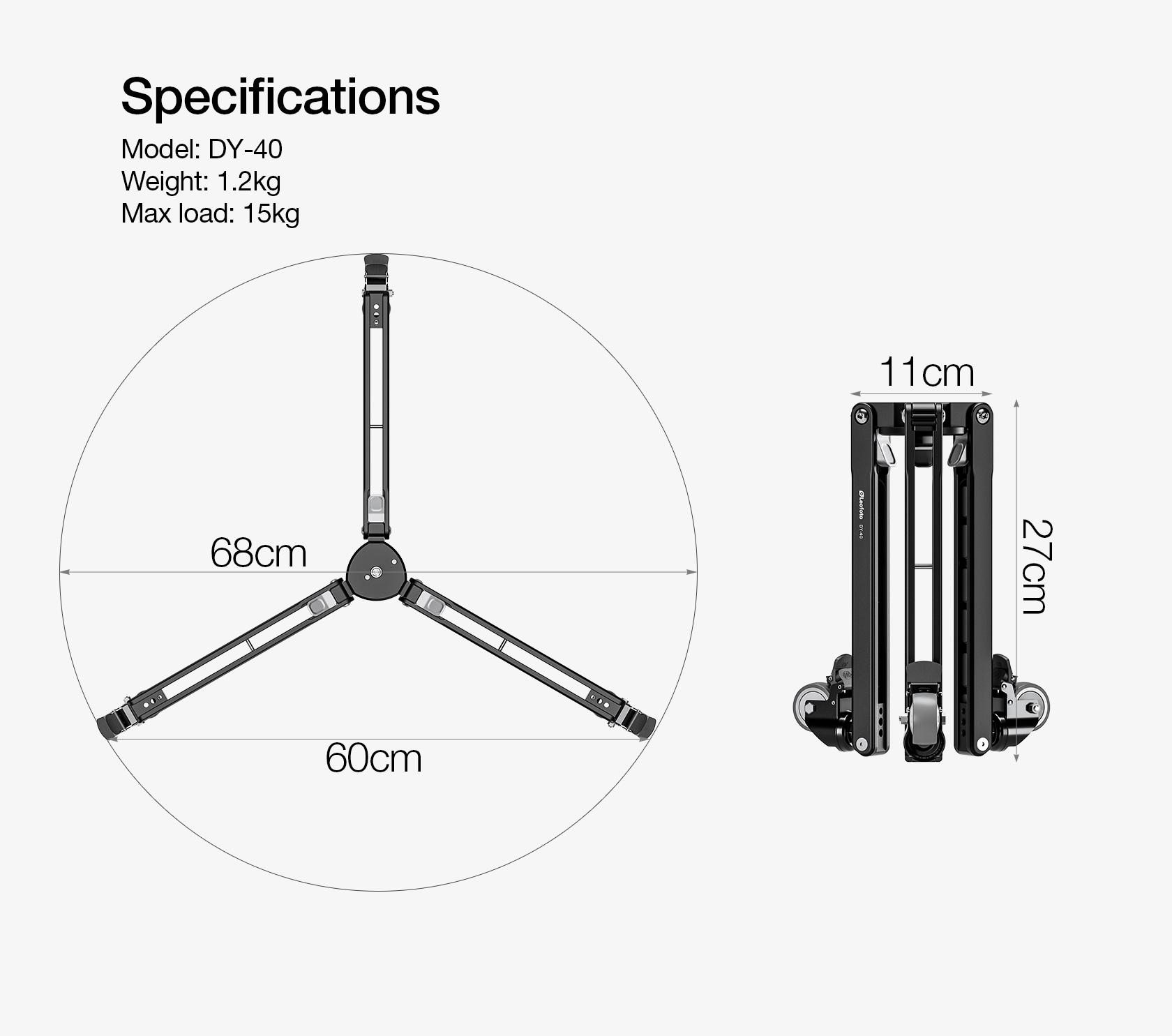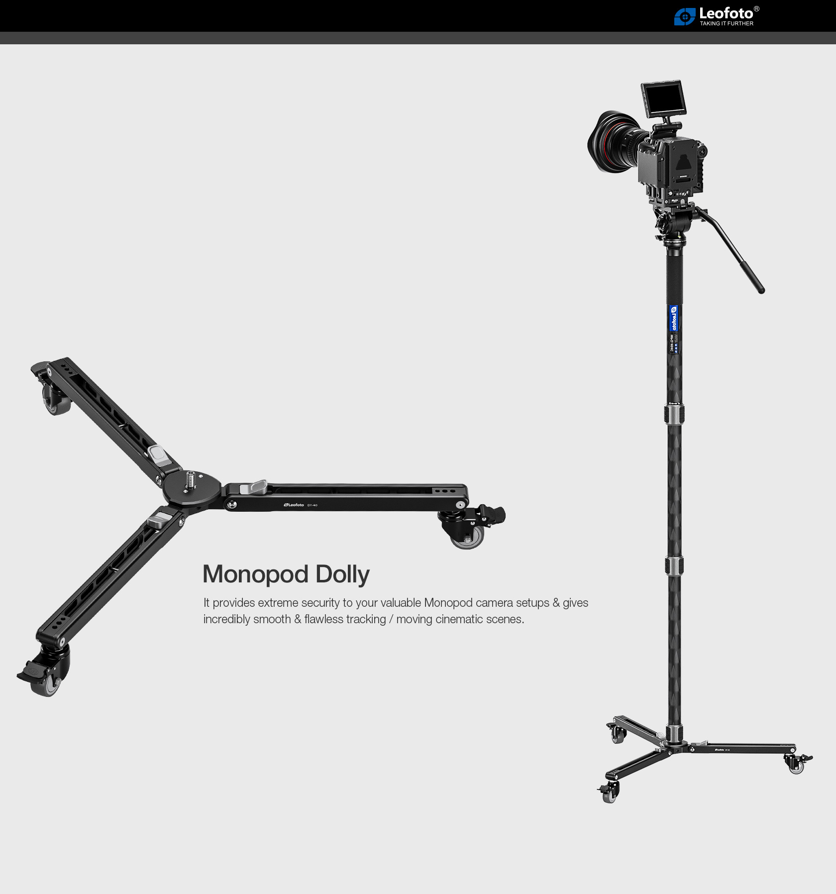 The Leofoto DY-40 Monopod Dolly is a compact rolling base specifically designed for monopods, providing smooth movement and added stability for video and photography setups. It is ideal for studio and indoor use where controlled, fluid motion is required.