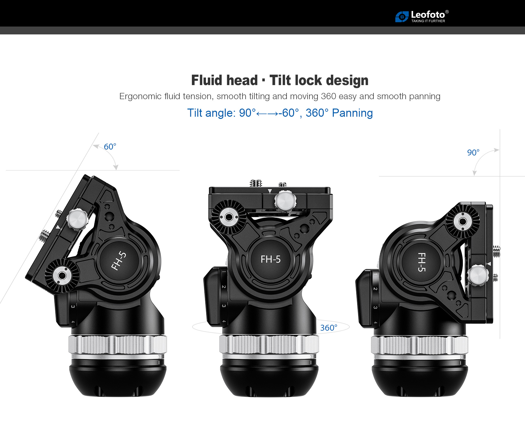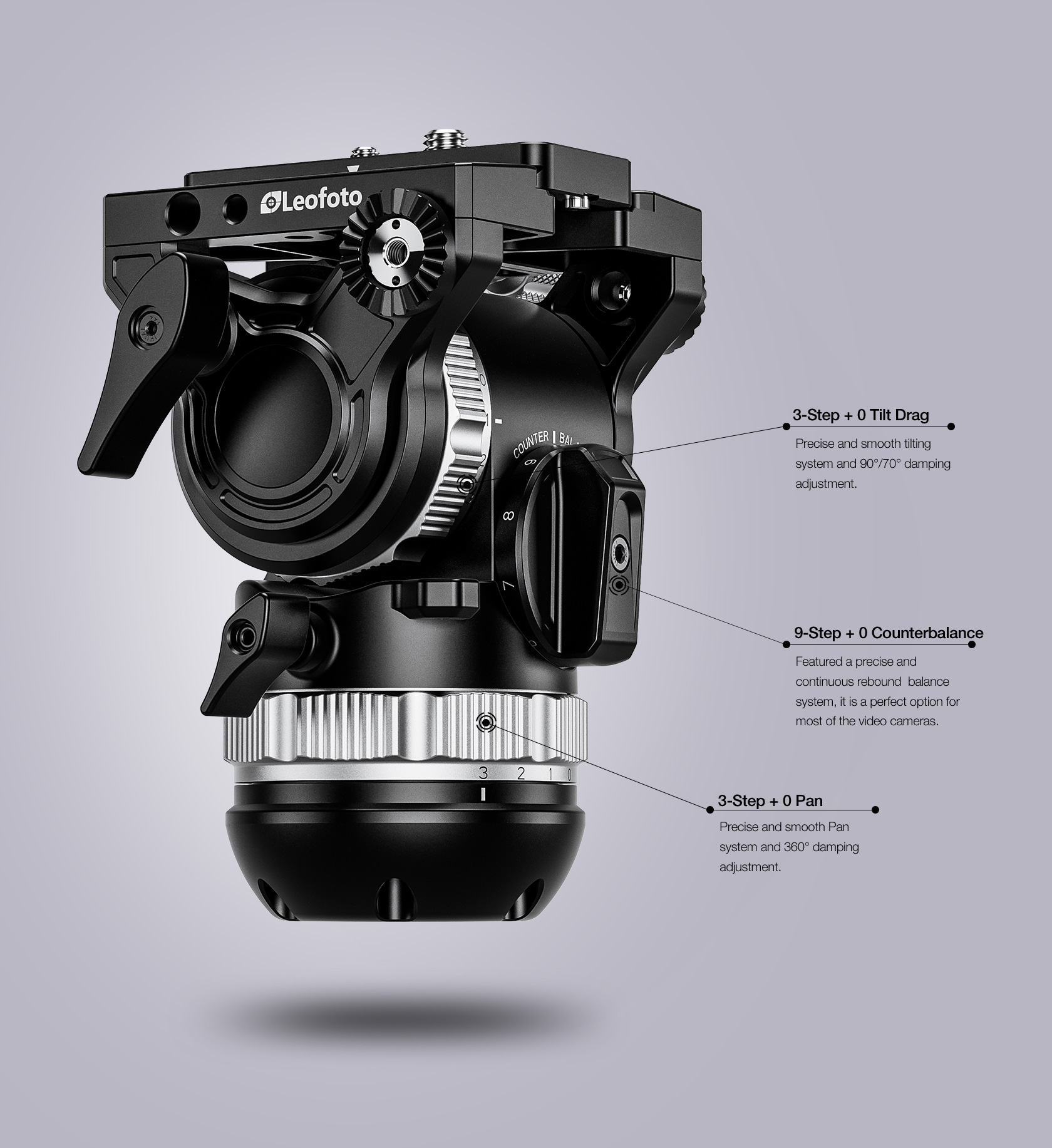 • 3-step pan drag + 0 and 3-step tilt drag + 0 for precise motion control
