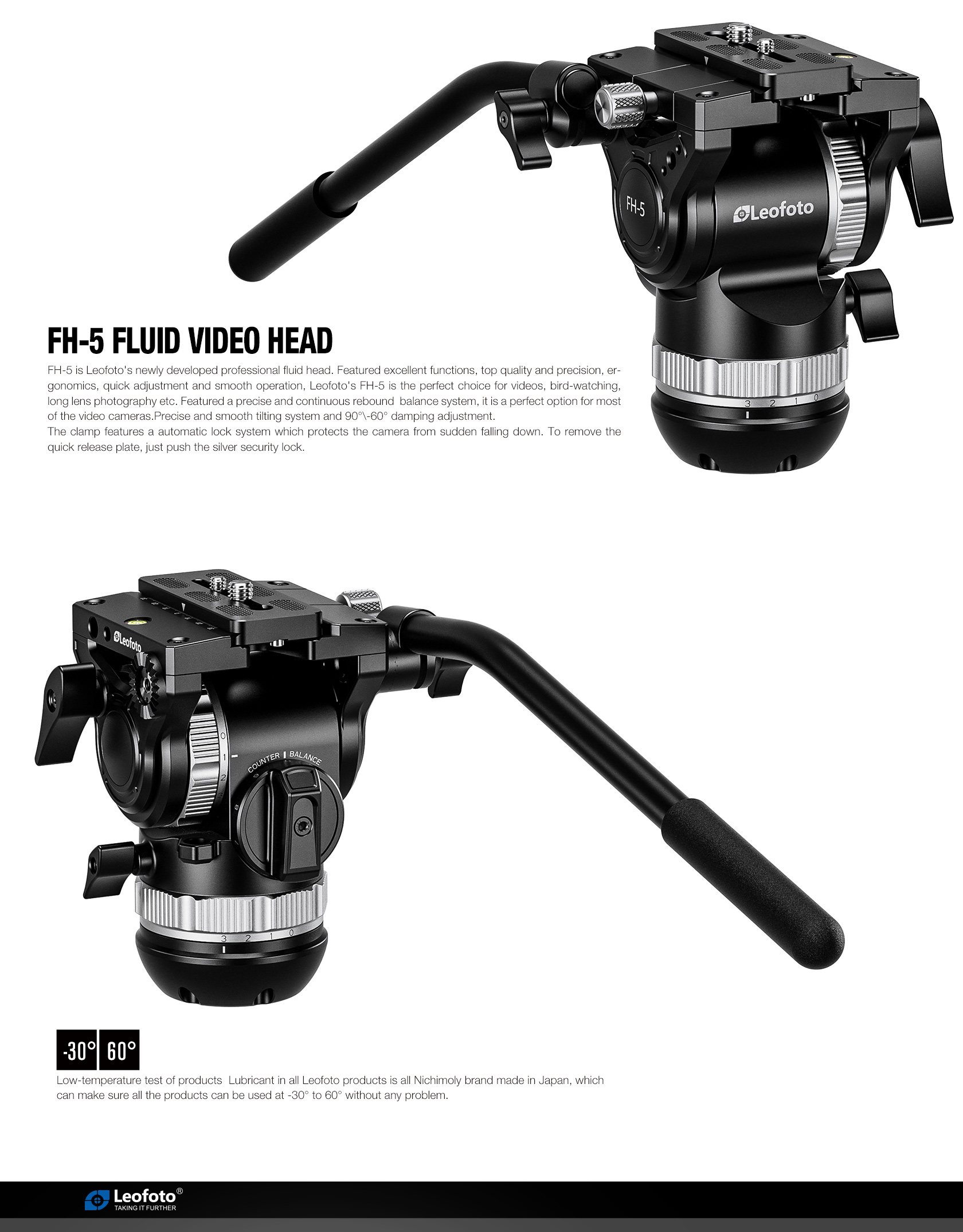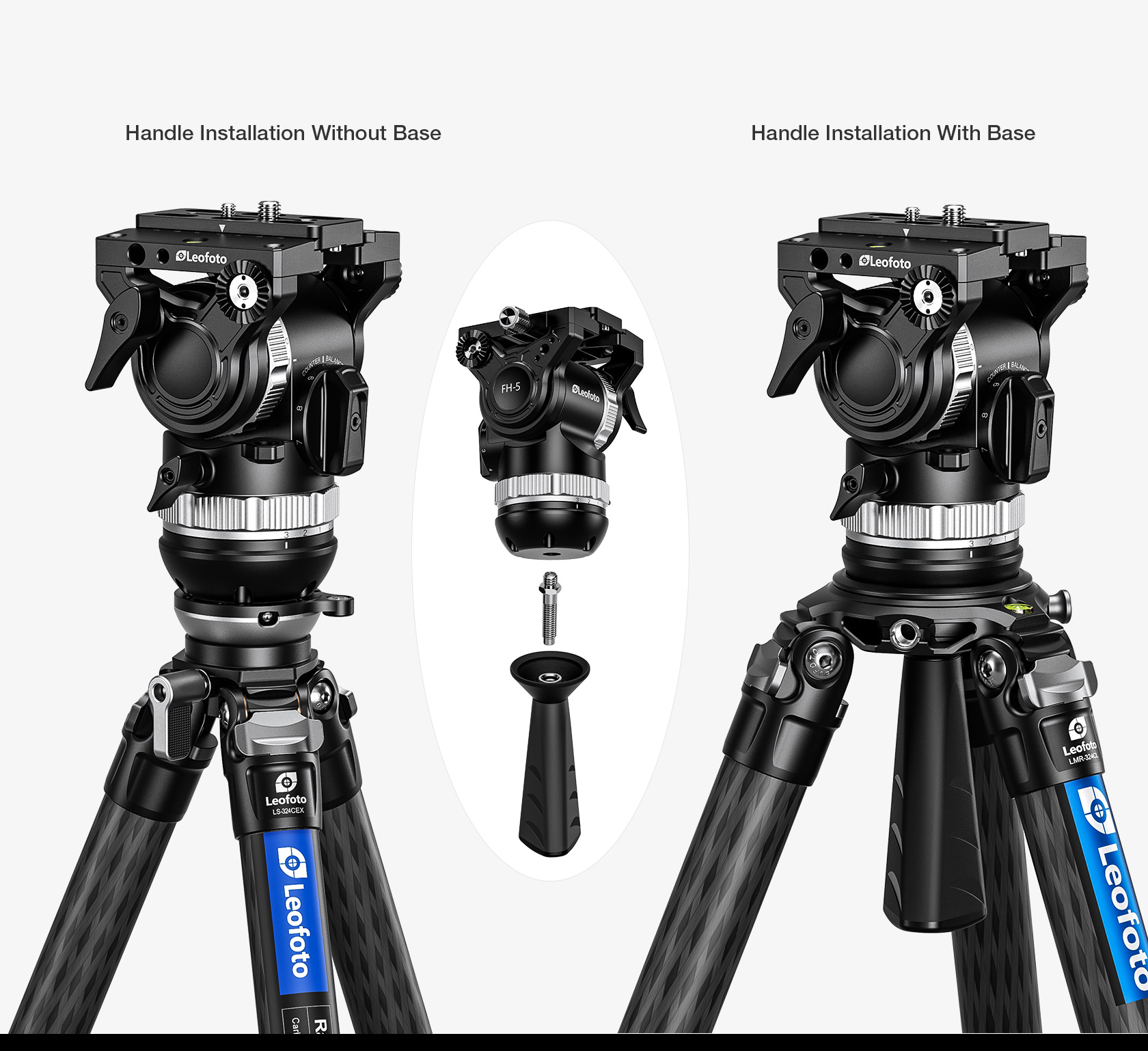 • 73mm half-ball base for fast levelling on video or photo tripods