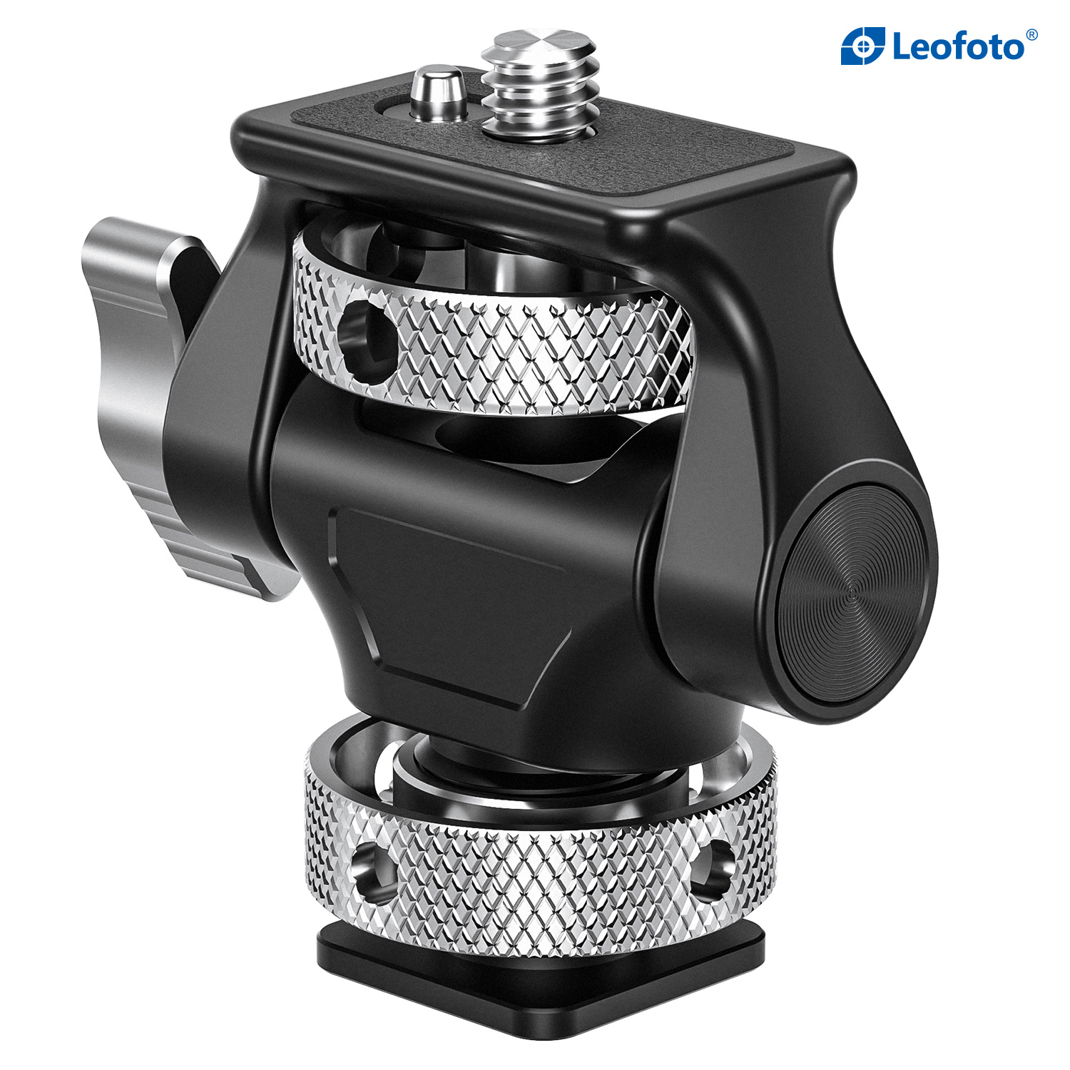 Mount any 5 or 7″ monitor with a 1/4″-20 mounting thread on your camera with the Leofoto FM-04 Swivel and Tilt Adjustable Monitor Mount | Coldshoe. This adjustable mount easily attaches to your camera rig using a cold shoe. It swivels 360°, tilts 180°, and is lockable in any position to establish the best possible viewing angle.