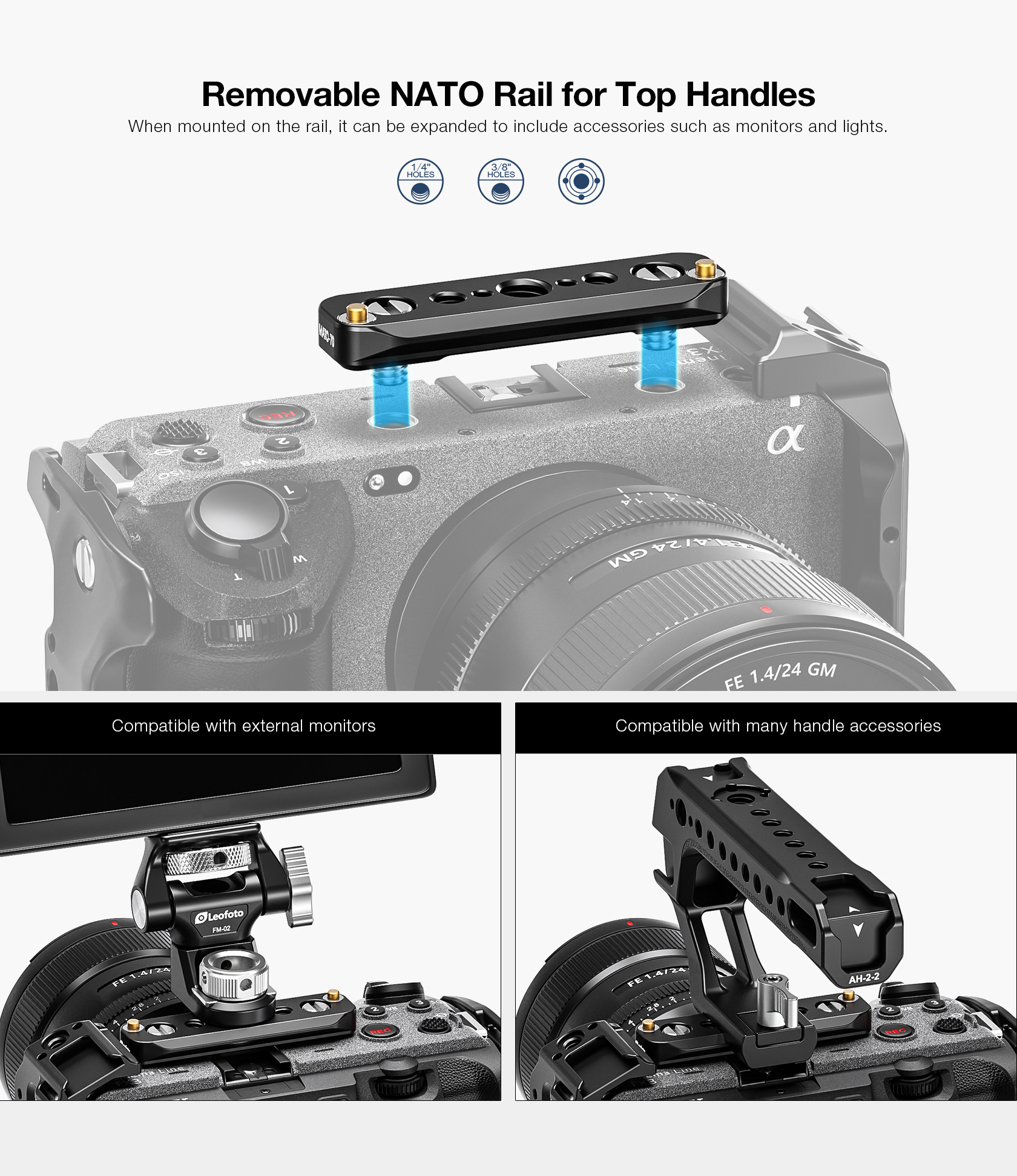 This formfitting anodized aircraft-grade aluminum cage maintains access to the camera’s controls and features a variety of mounting options. A raised front plate prevents your camera from twisting in the cage and has tapped holes for mounting optional accessories such as lens supports.