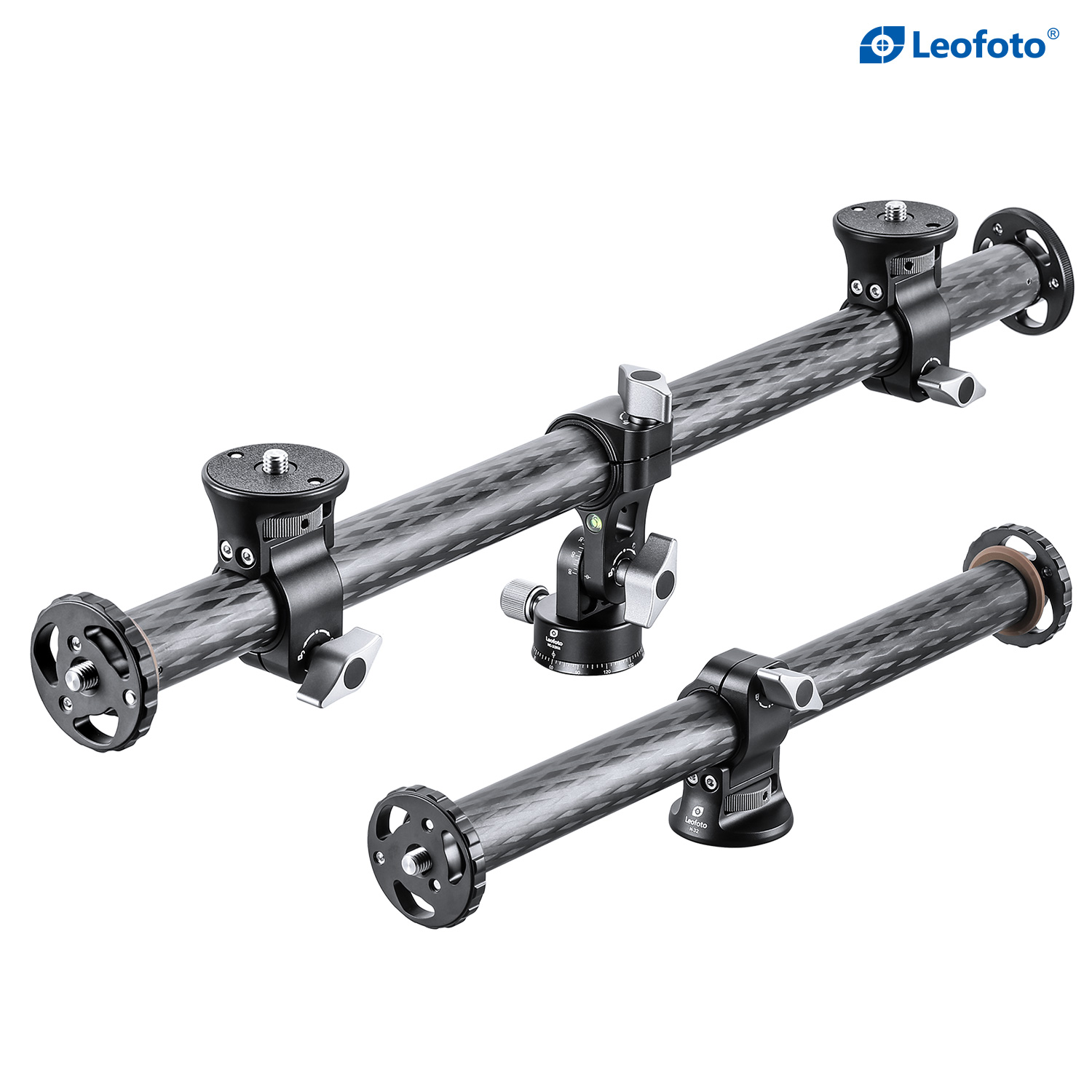 The Leofoto H-32 Carbon Fiber Tripod Arm is a 16.5″ arm that mounts on any tripod leg set with a 3/8″-16 threaded mounting stud. Each end of the arm features a reversible 3/8″-16 threaded mounting stud that can be unthreaded and flipped to reveal a 1/4″-20 threaded mounting stud, making it compatible with virtually any head.