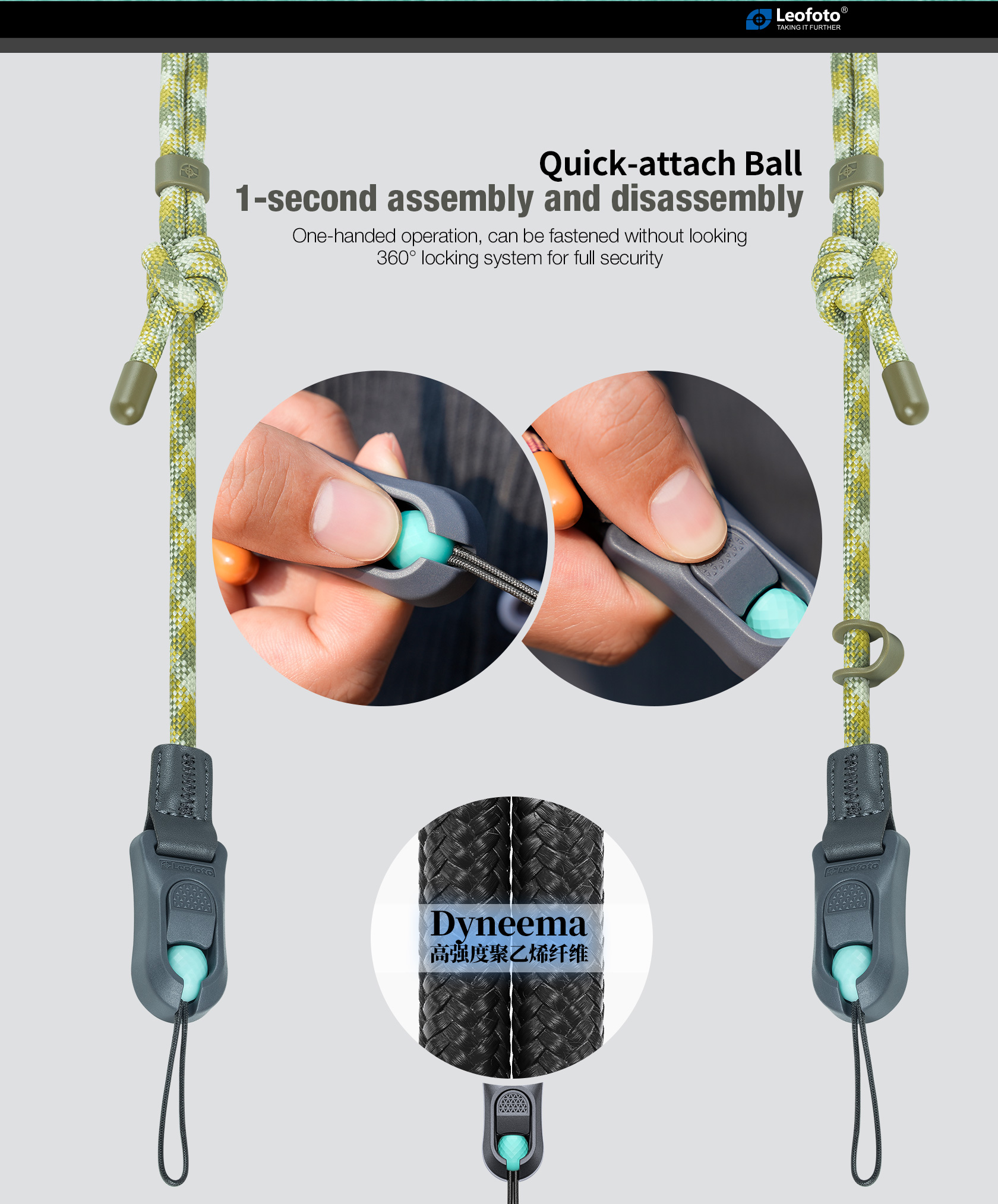 Equipped with a quick-release mechanism, the straps allow for rapid attachment and detachment in just one second, offering a seamless user experience during busy shooting sessions. The heavy-duty double-stitched seams and dual-layer security provide added durability, while the metal snap hook and 360° locking system guarantee a secure fit for your gear.