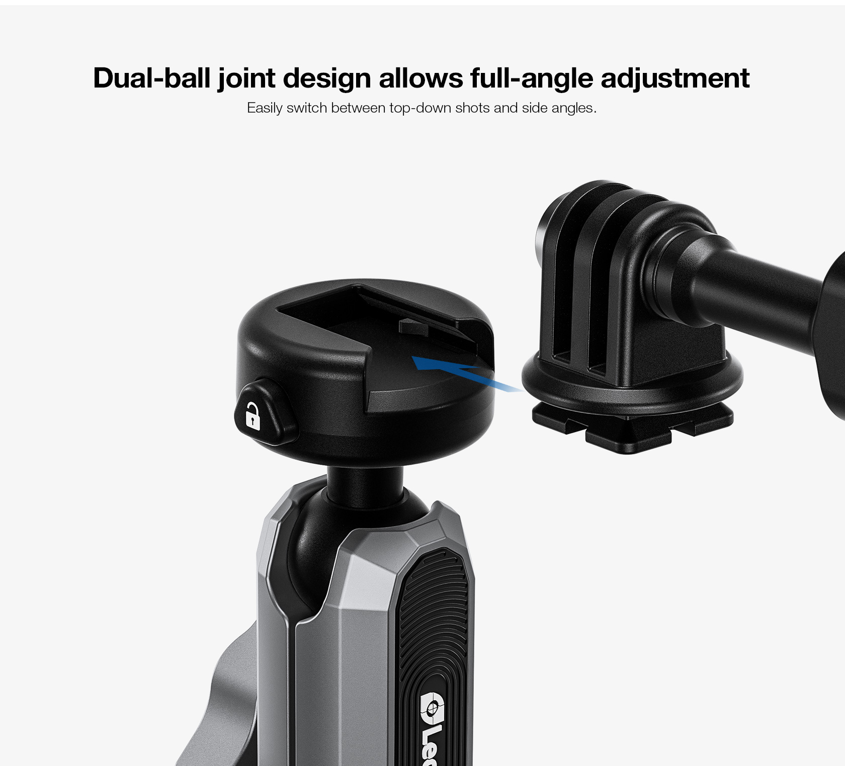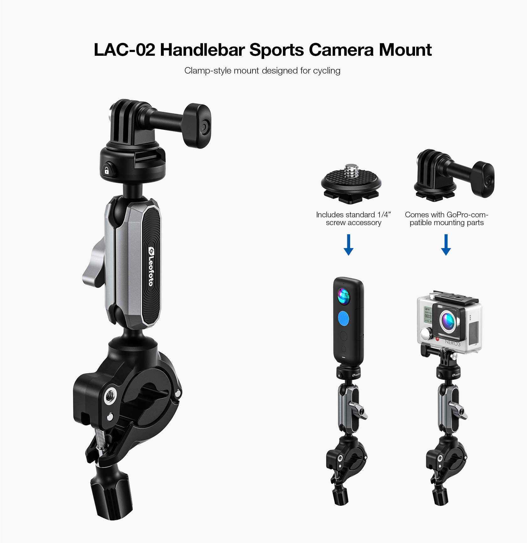 The Leofoto LAC-02 Handlebar Sports Camera Mount is a clamp-style solution designed specifically for cycling enthusiasts. Its quick-release handlebar clamp allows for fast and secure installation on a variety of bike handlebars.