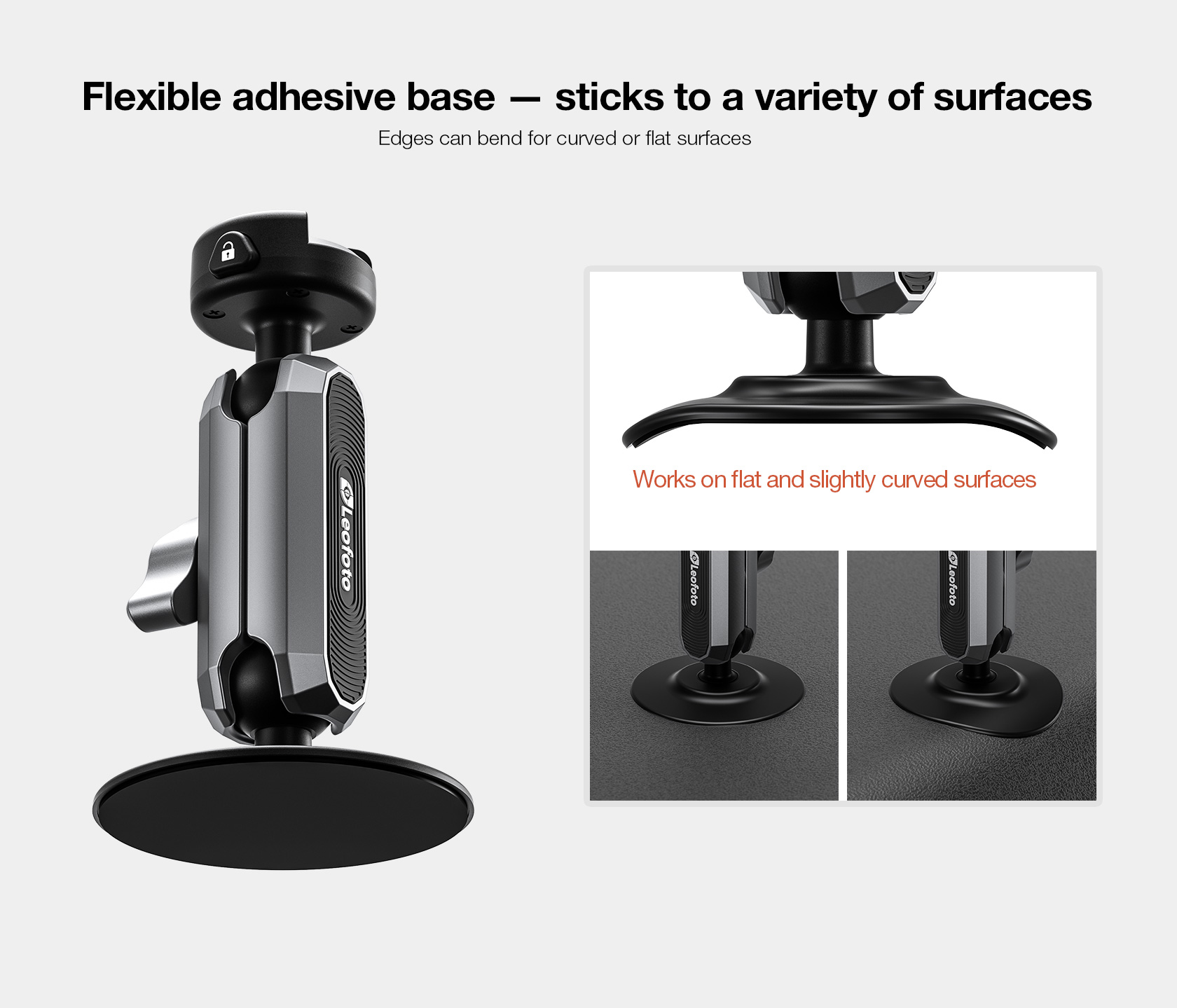 The Leofoto LAC-03 is a versatile adhesive mount designed for action and sports cameras. Its flexible base securely sticks to a wide range of surfaces, while the bendable edges allow it to conform to both flat and slightly curved surfaces. Ideal for helmets, boards, and other gear, it provides a reliable mounting solution for dynamic shooting environments.
