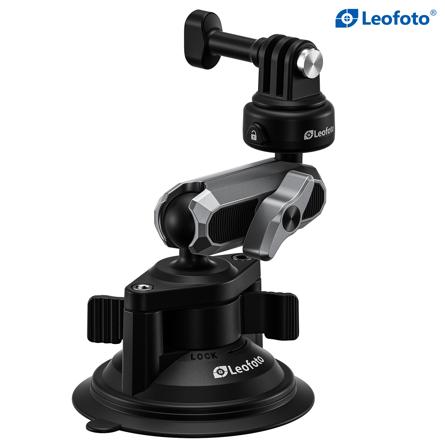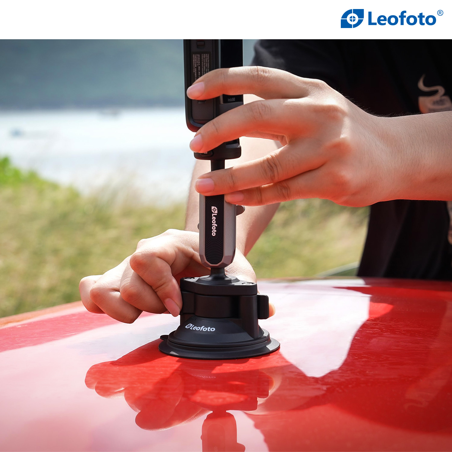 The Leofoto LAC-04 Suction Cup Sports Camera Mount features a reinforced vacuum suction system with knob control, providing strong and reliable suction on a wide range of smooth surfaces. Its highly flexible design makes it suitable for various scenarios, from cars and boats to other flat surfaces.