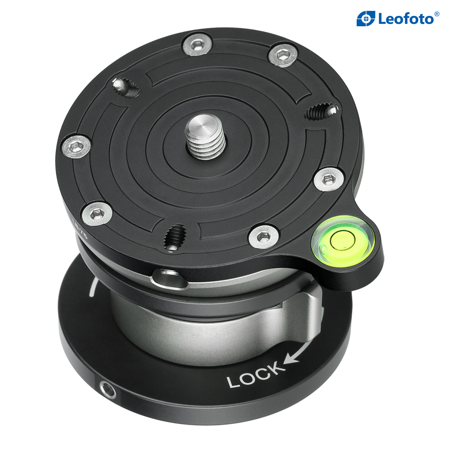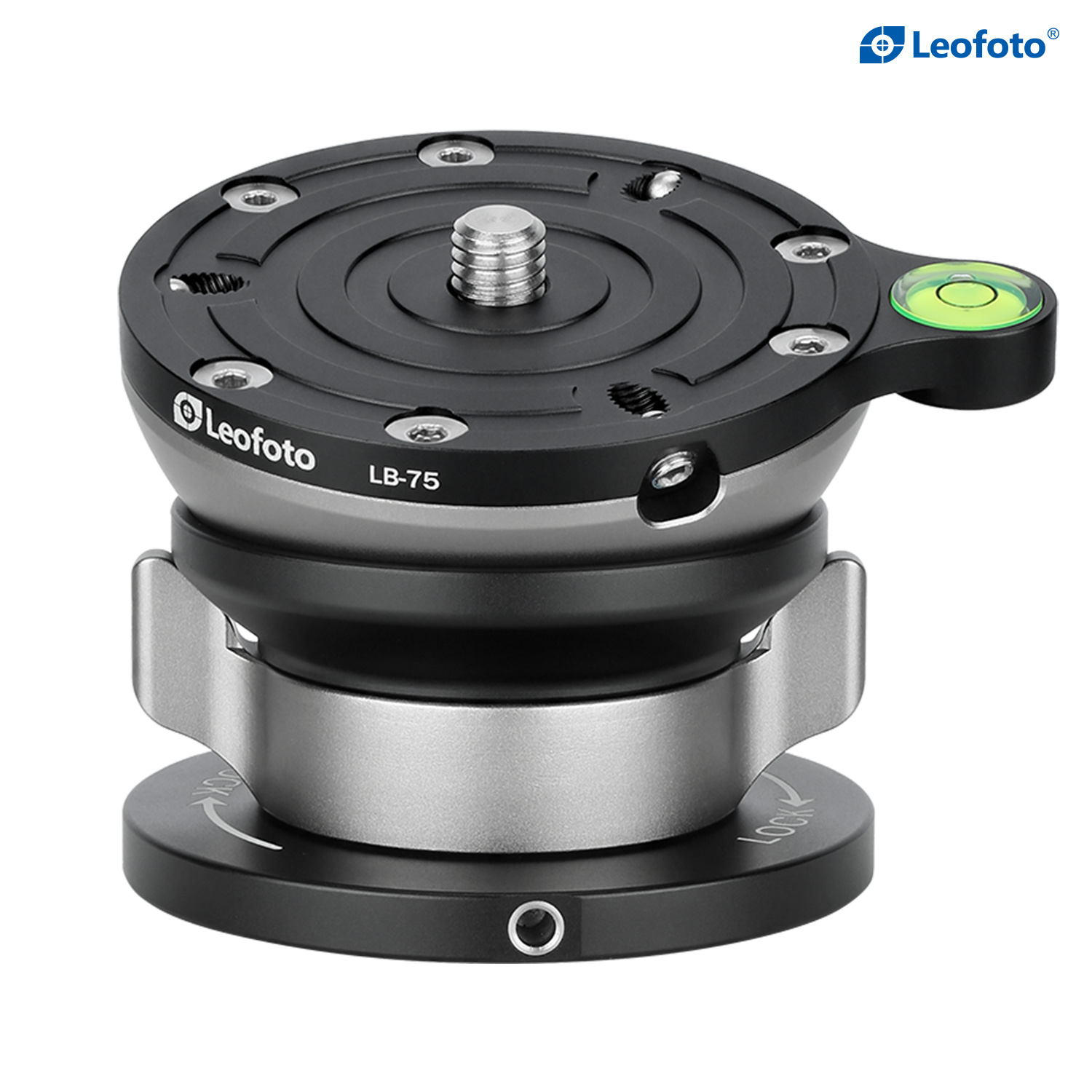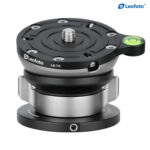 The Leofoto LB Series Leveling Base with Butterfly Handle acts like a half ball, with the LB-38 mini providing a leveling range of +/-10°, while the other models in the series offer a range of +/-15°. It locks easily and securely in position with a twist of the large butterfly handle at the base of the ball. This leveling base installs on any tripod with a 3/8″ mounting stud.