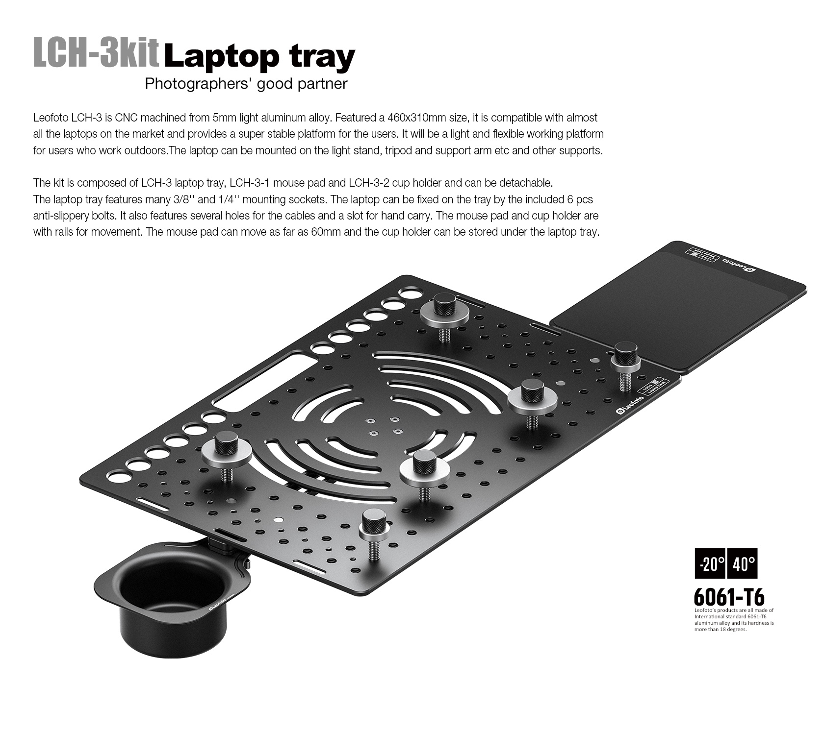 Leofoto LCH-3Kit Ultimate Laptop Tray Kit | 1/4″ and 3/8″ Compatible – LCH-3-Kit