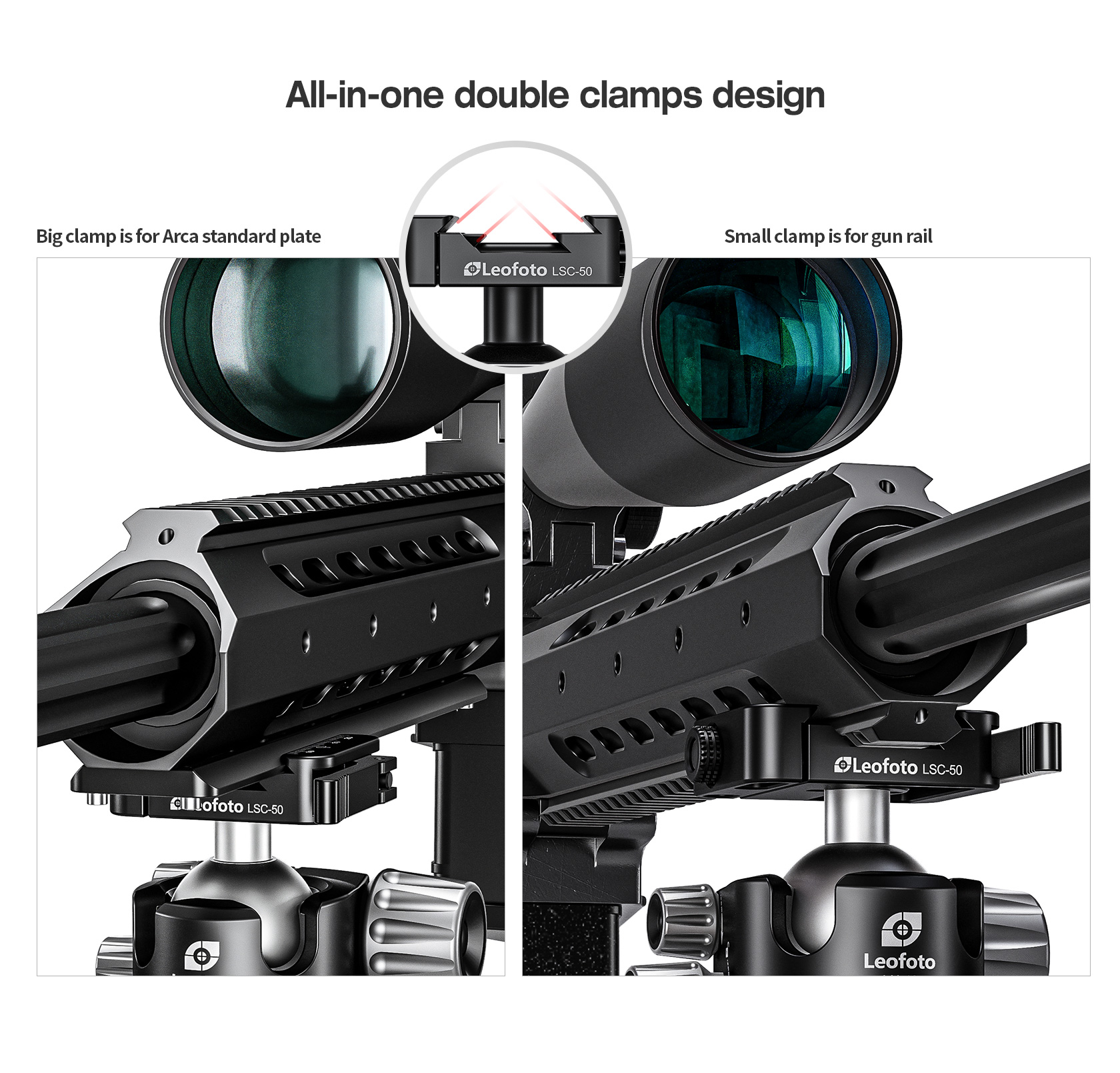 Two versions are available: one with a dual Arca and Picatinny clamp and another with an Arca-only clamp. Please choose the option that best suits your needs.