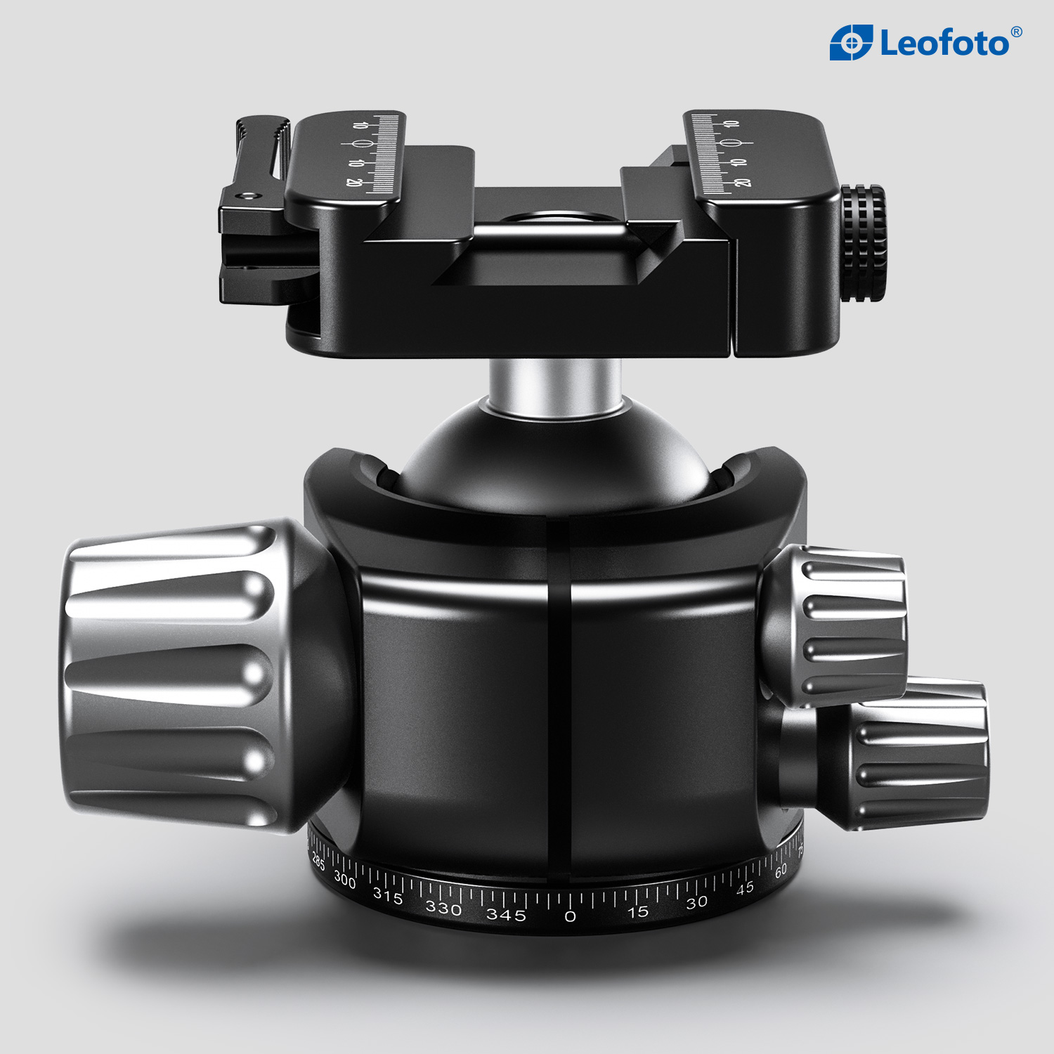 Precision panning base is finely laser-engraved at 2.5 degree intervals