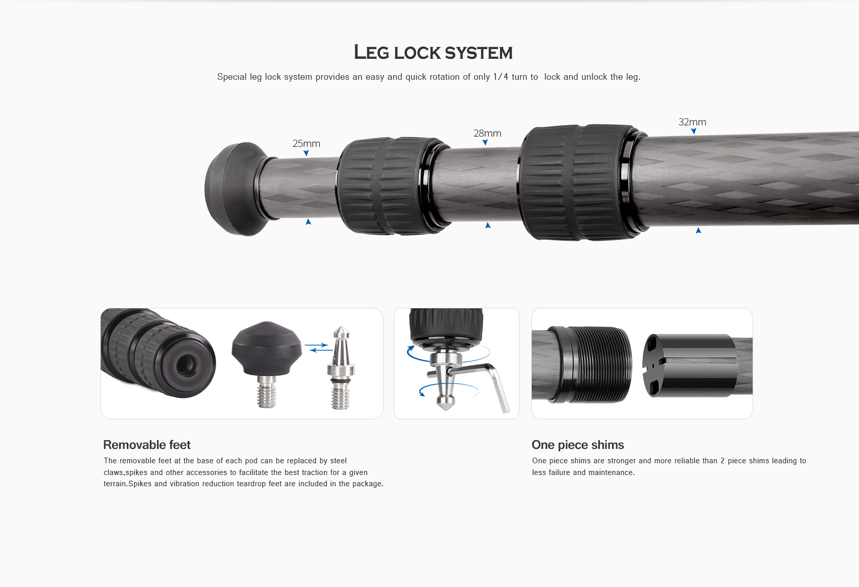 With the tripod’s three variable leg angle stops, it allows you to splay the legs completely out. At the tripod’s apex, the spider has been hollowed out, which adds to the relevance of the tripod’s light weight. Additionally, the mounting platform is removable, so it can be exchanged with the included 75mm video bowl to install a fluid head. An integrated 3/8″-16 socket is made available on the side of the spider for photo or video accessories. Leofoto tripods come with a carrying case to store or travel with the support system.