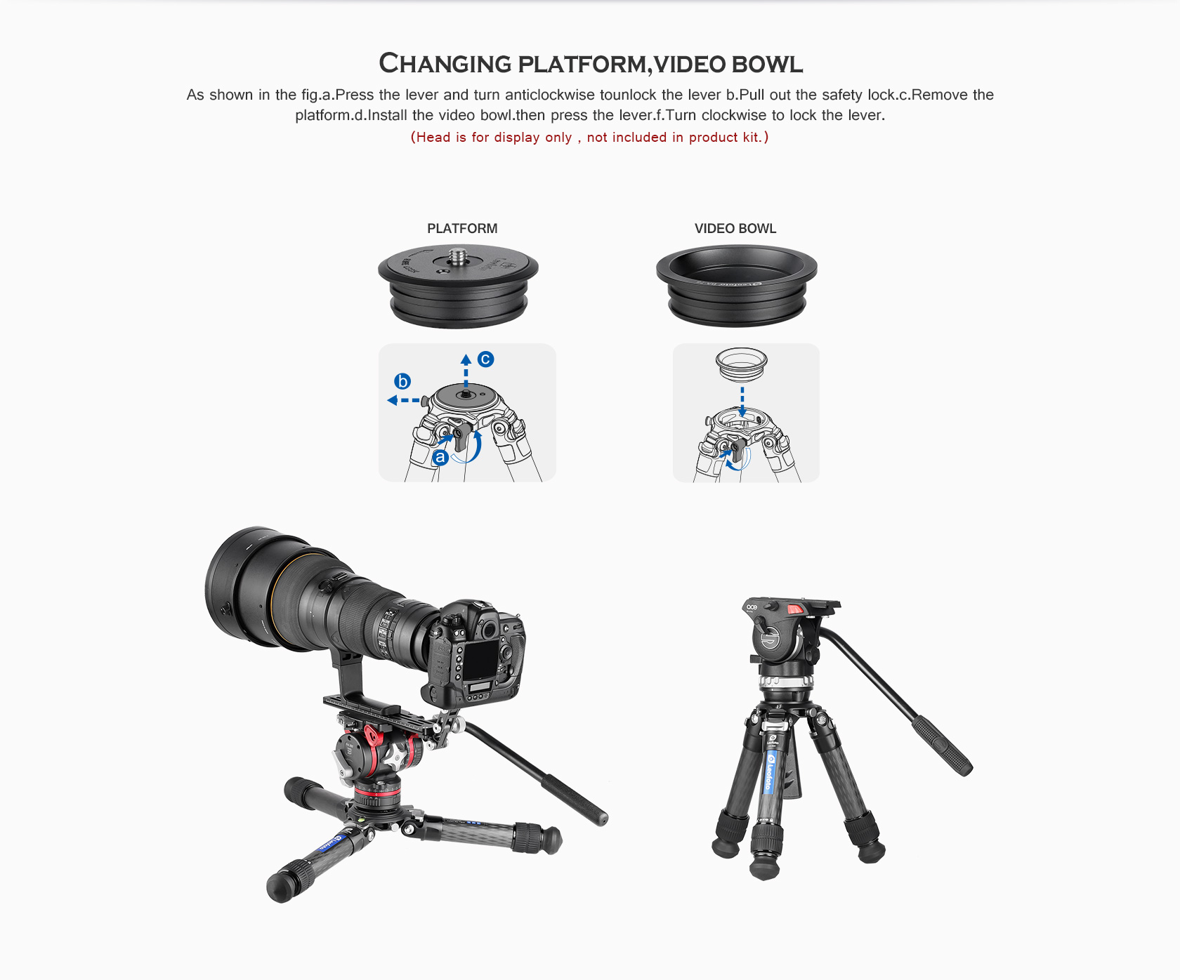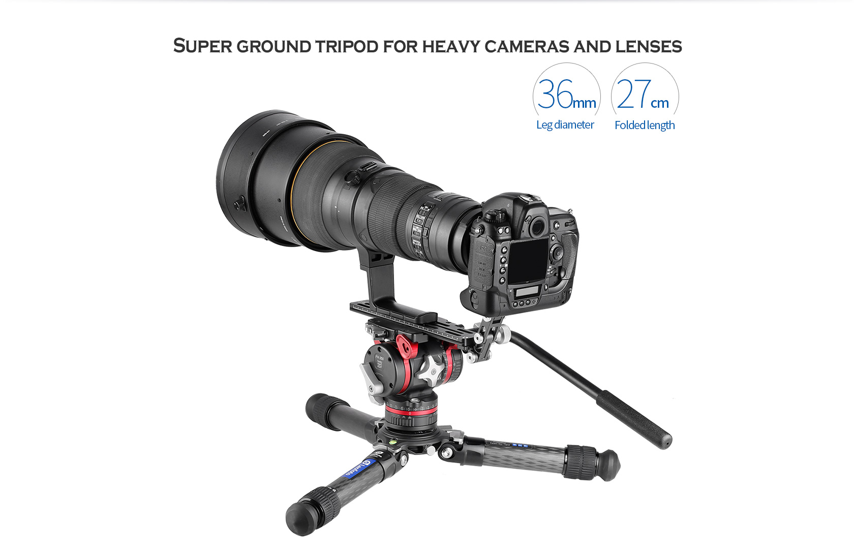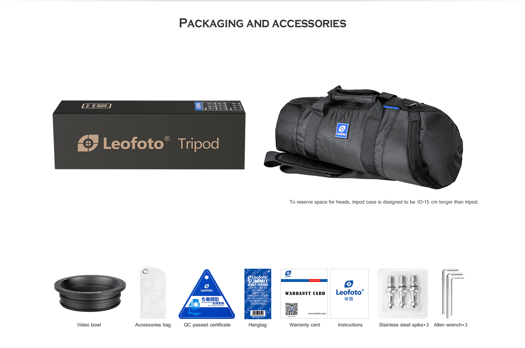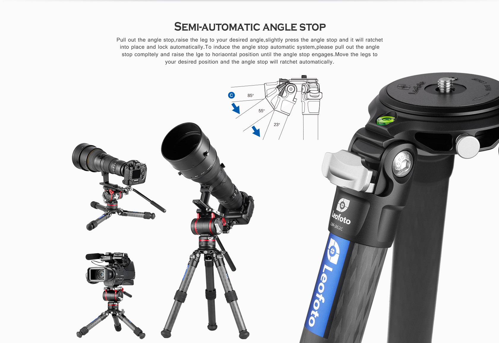 With the tripod’s three variable leg angle stops, it allows you to splay the legs completely out. At the tripod’s apex, the spider has been hollowed out, which adds to the relevance of the tripod’s light weight. Additionally, the mounting platform is removable, so it can be exchanged with the included 75mm video bowl to install a fluid head. An integrated 3/8″-16 socket is made available on the side of the spider for photo or video accessories. Leofoto tripods come with a carrying case to store or travel with the support system.