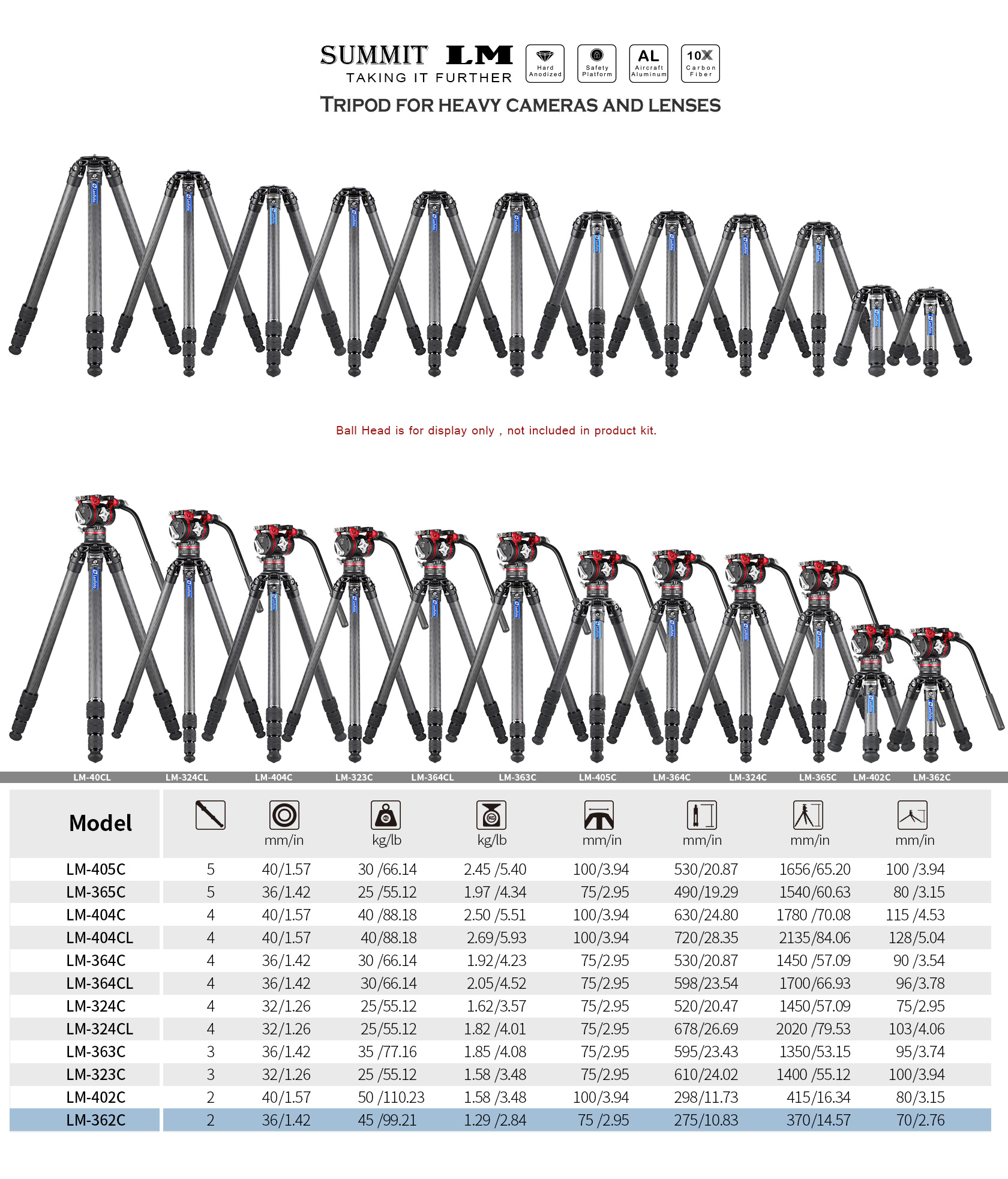 Reach for the top with the Leofoto LM Summit Series Carbon Fiber Tripod. The 2-section support has 10x carbon fiber tubes that make the tripod a lightweight support while maintaining a heavy max load capacity. The 6061 aluminum parts are CNC machined and hard anodized, creating a durable and scratch resistant surface. The twist leg lock system is quick, only requiring a quarter turn, which enables you to completely extend and collapse the tripod rapidly.