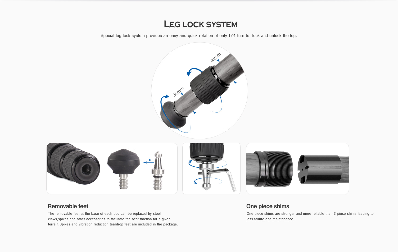 With the tripod’s three variable leg angle stops, it allows you to splay the legs completely out. At the tripod’s apex, the spider has been hollowed out, which adds to the relevance of the tripod’s light weight. Additionally, the mounting platform is removable, so it can be exchanged with the included 75mm video bowl to install a fluid head. An integrated 3/8″-16 socket is made available on the side of the spider for photo or video accessories. Leofoto tripods come with a carrying case to store or travel with the support system.