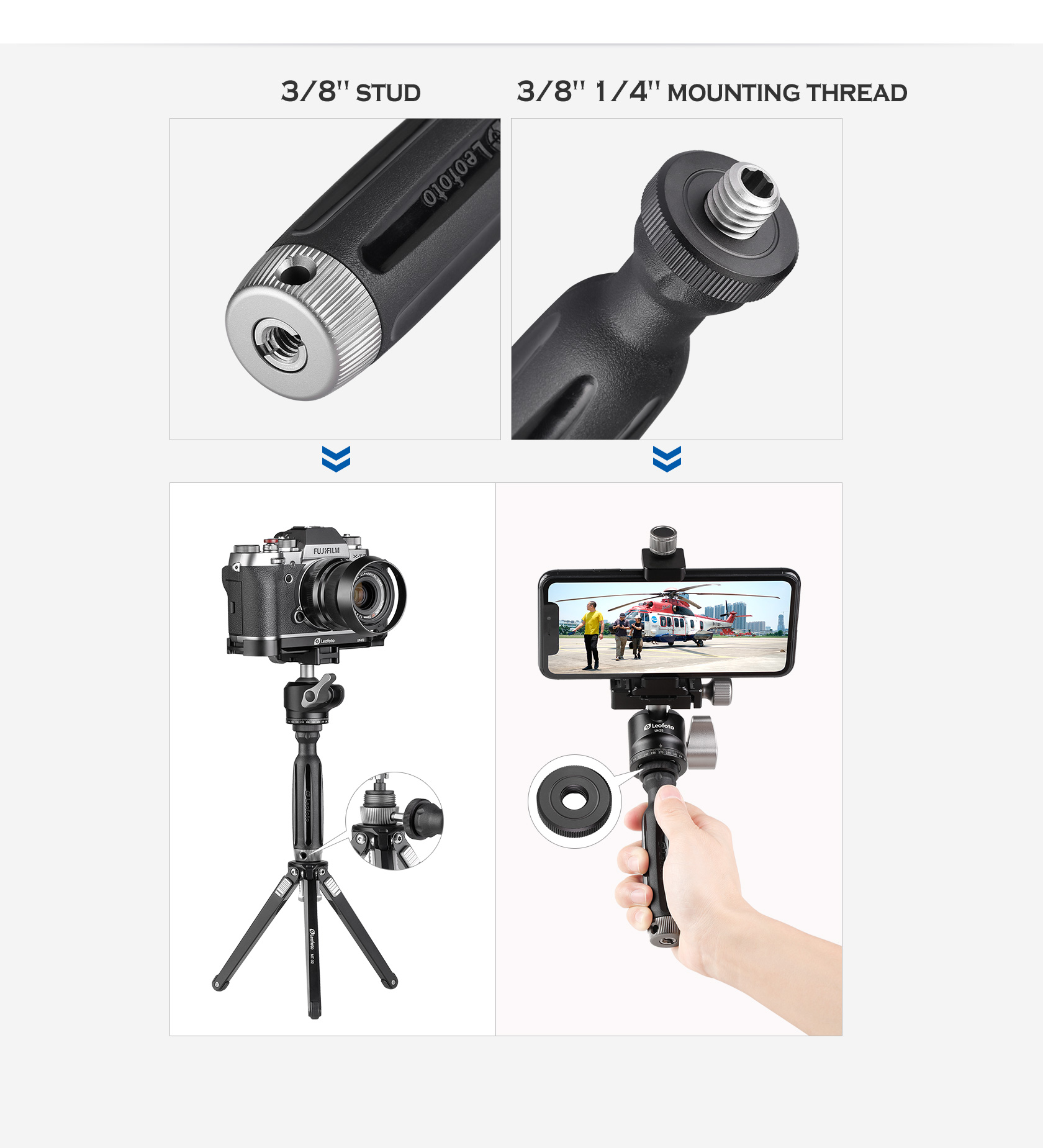 Handle Doubles as a 4.5″ Tripod Column Extender