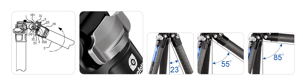 Mr. O’s spider is with a built-in hollow ball, which completely abandon the limitation of up-and-down straight center column and it can move and adjust the angle as freely as a ballhead. Mr.O series is a professional and powerful tripod which can support long lens and heavy cameras. With its low weight and versatile stability, Mr.O will become the new standard for outdoor tripods.