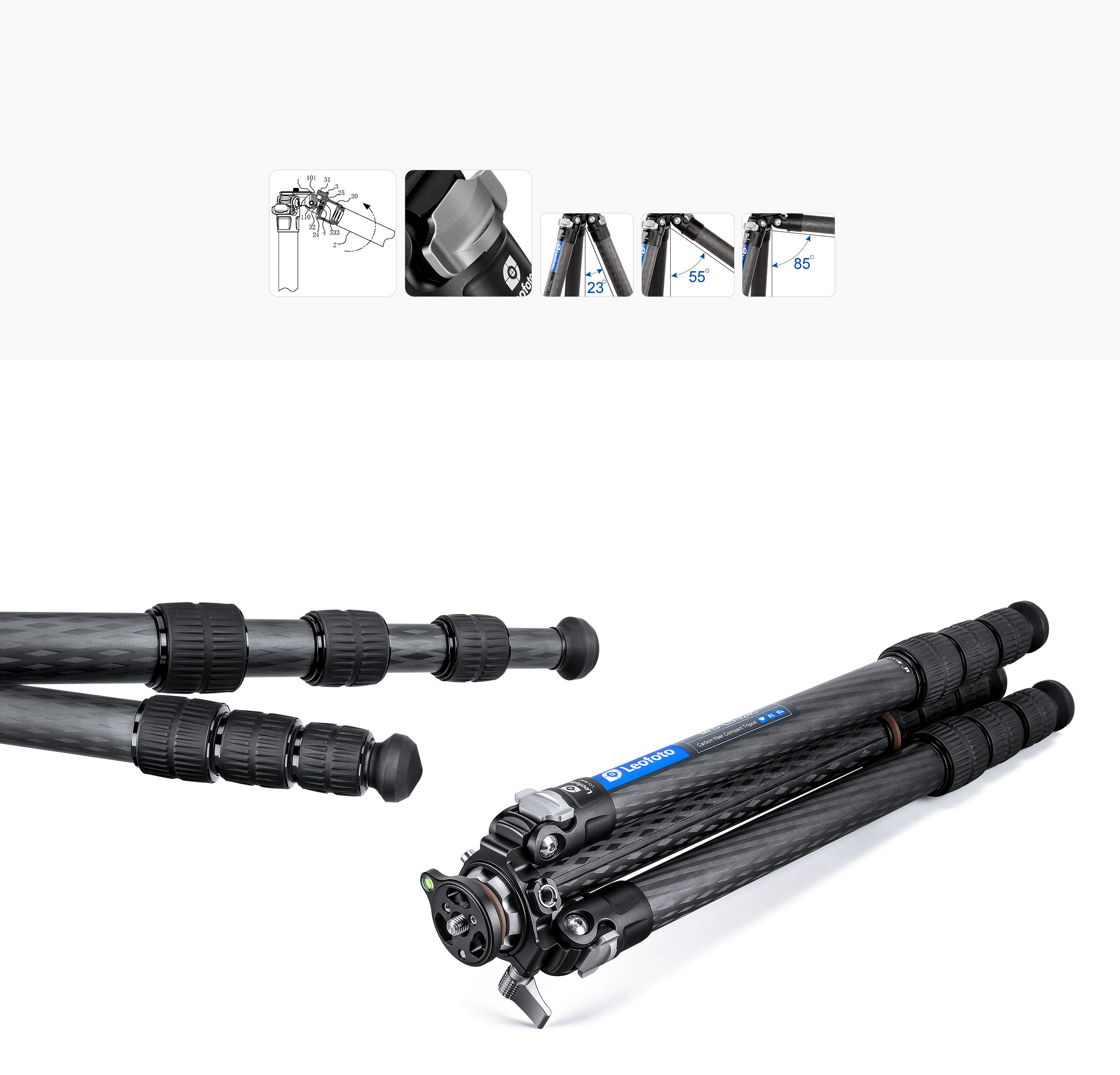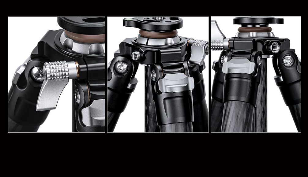 Toray 100% 10-layer carbon fiber leg tubes feature cross rhombus structure for greater strength, stability and less vibration.