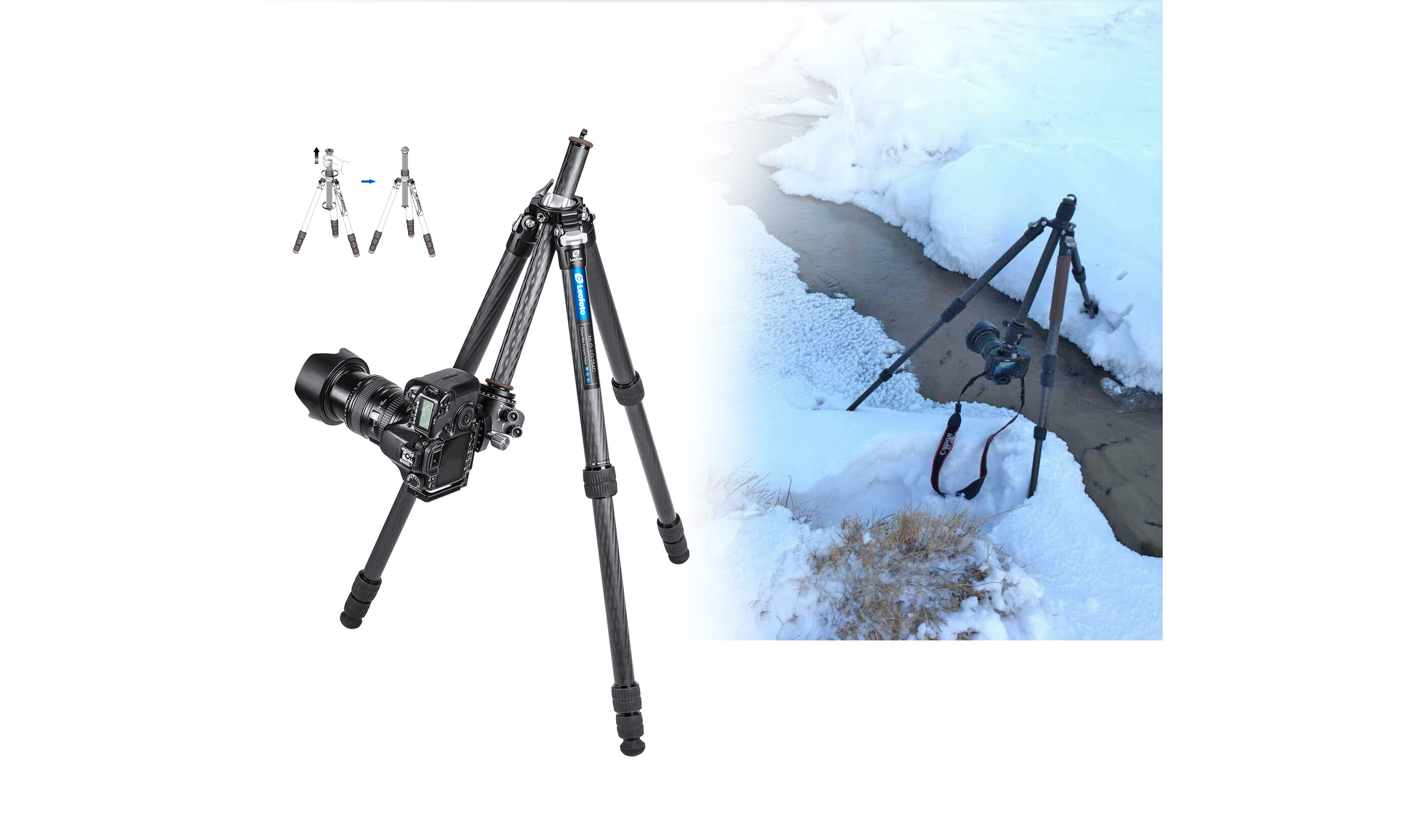 Mr. O’s spider is with a built-in hollow ball, which completely abandon the limitation of up-and-down straight center column and it can move and adjust the angle as freely as a ballhead. Mr.O series is a professional and powerful tripod which can support long lens and heavy cameras. With its low weight and versatile stability, Mr.O will become the new standard for outdoor tripods.