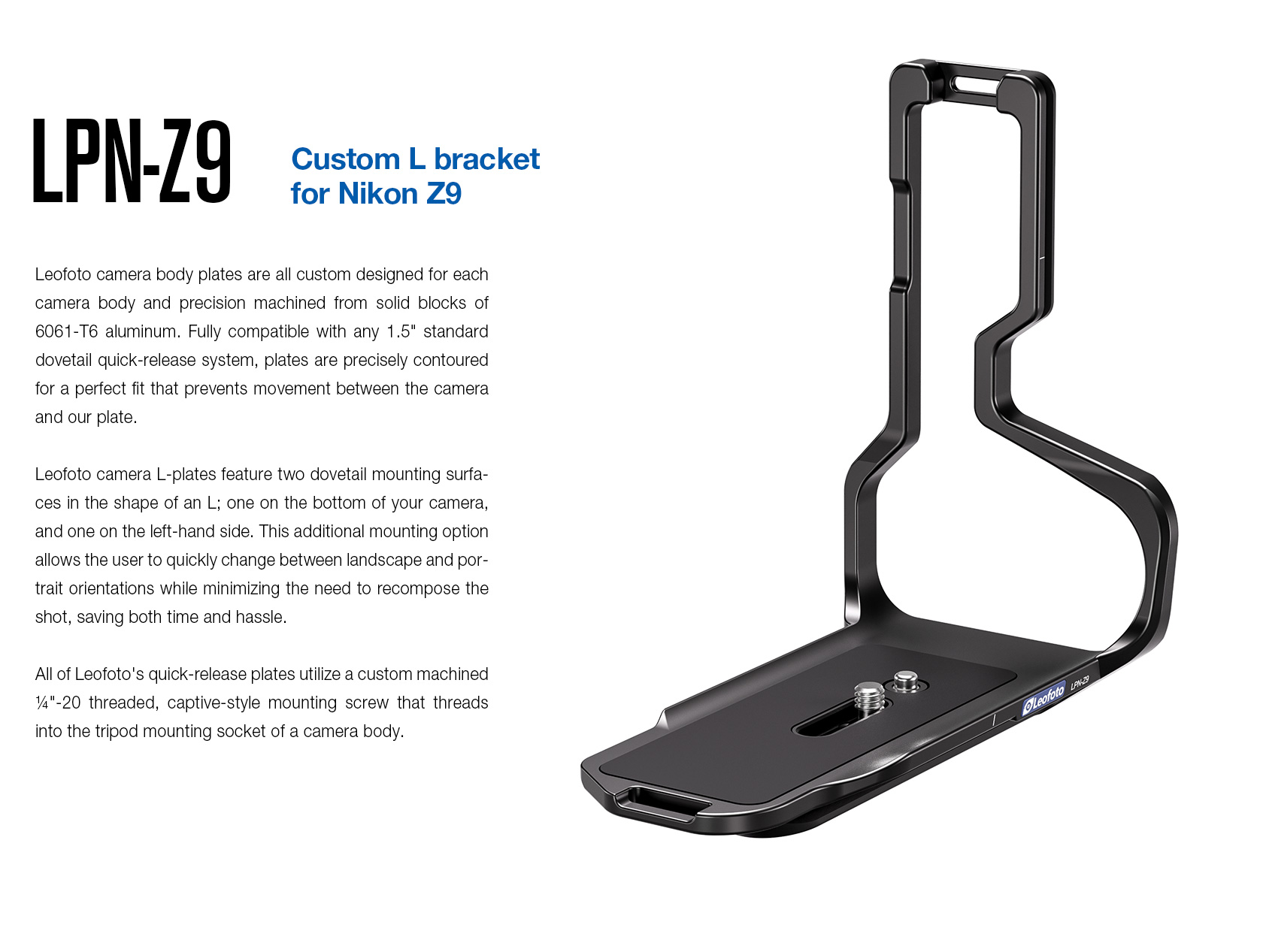 Leofoto LPN-Z9 L Plate for Nikon Z9 Camera