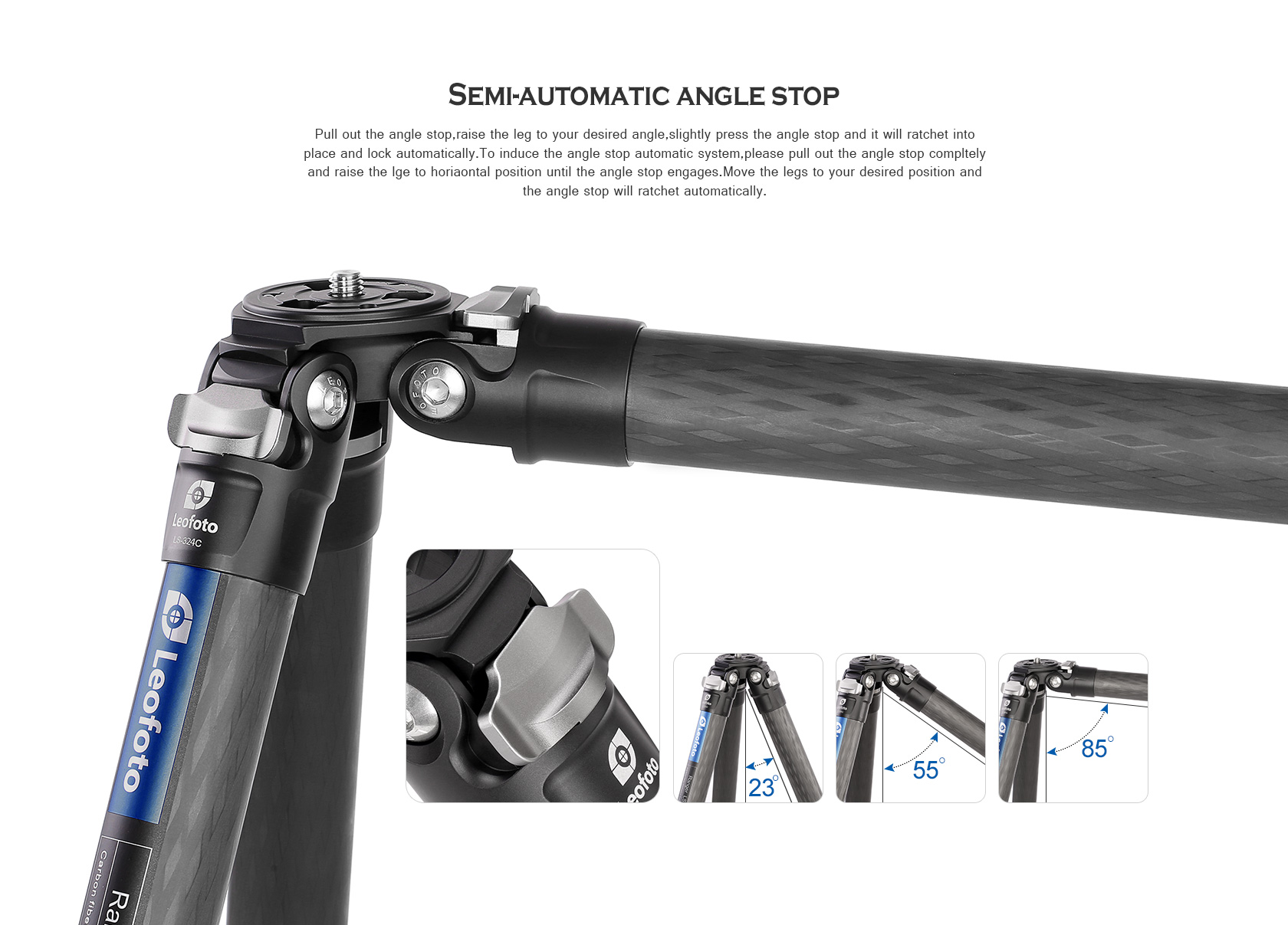 Pull out the angle stop,raise the leg to your desired angle,slightly press the angle stop and it will ratchet into place and lock automatically.To induce the angle stop automatic system,please pull out the angle stop compltely and raise the lge to horiaontal position until the angle stop engages.Move the legs to your desired position and the angle stop will ratchet automatically.