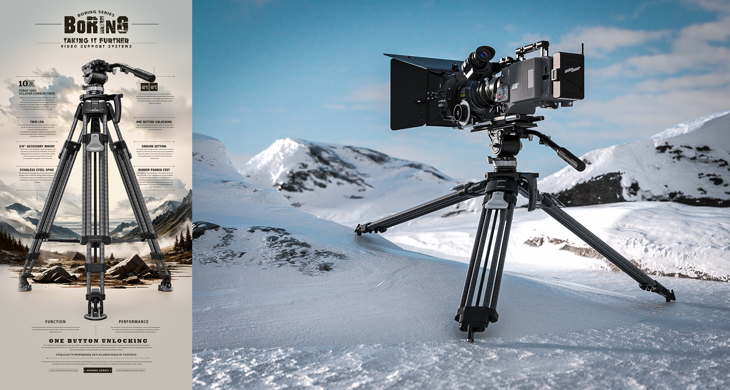 Stainless steel spike feet and hoof-shaped rubber feet make the tripod more flexible in different environments.