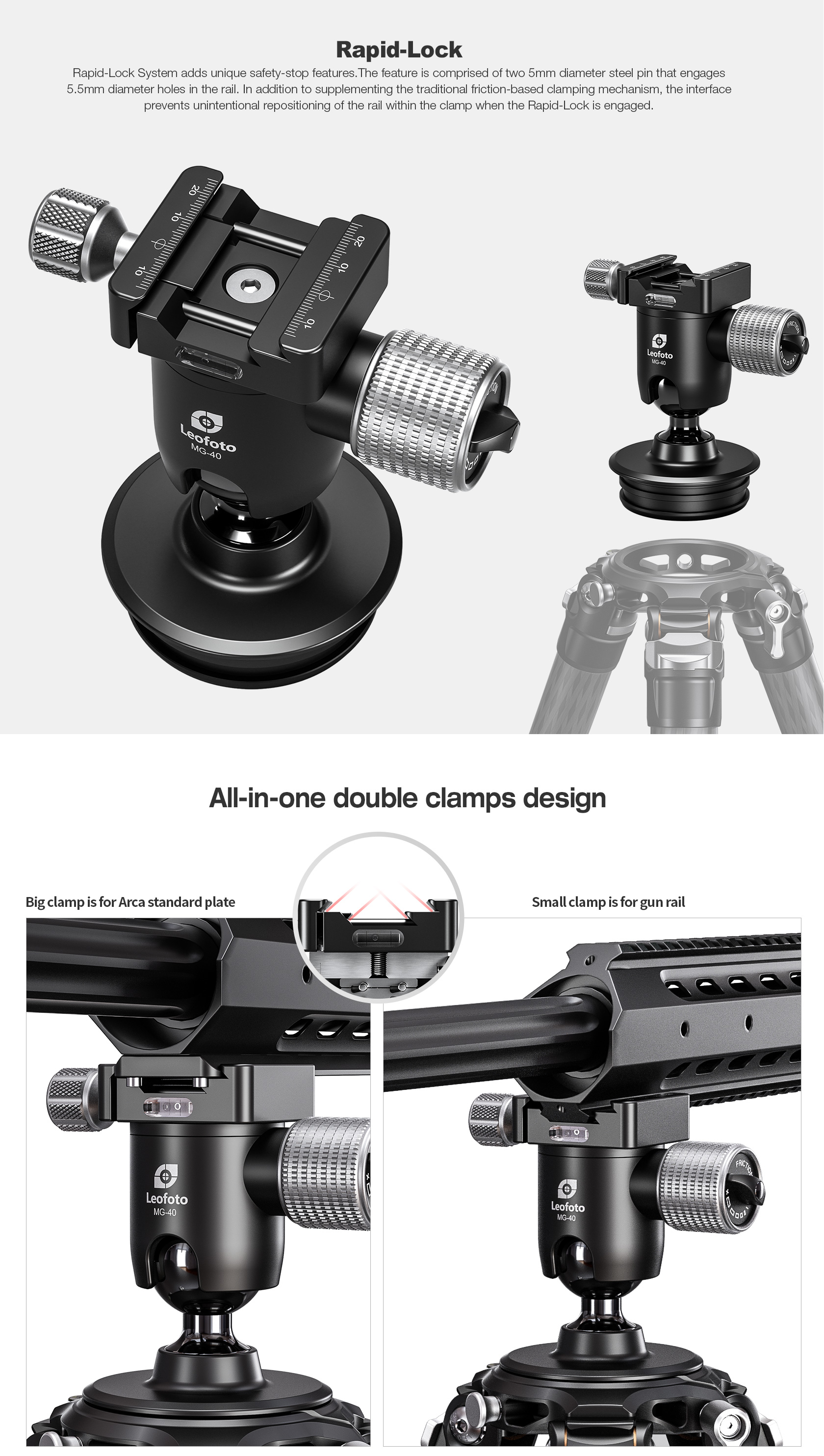 The Leofoto MAB-75G Precision Rifle Ball Head with 75mm Systematic Adapter is machined from solid aircraft grade aluminum and hard anodized for the optimal strength and durability. The MAB-75G is designed to be used with 75mm compatible systematic tripod apexes. It features a redesigned lever-release arca clamp as well as a lever controlled ball. The redesigned clamp comes with an adjustable clamping width. The MAB-75G is essentially an MG-40 ball head attached to a 75mm adapter.. The systematic adapter can only be placed into a 75mm systematic tripod apex.