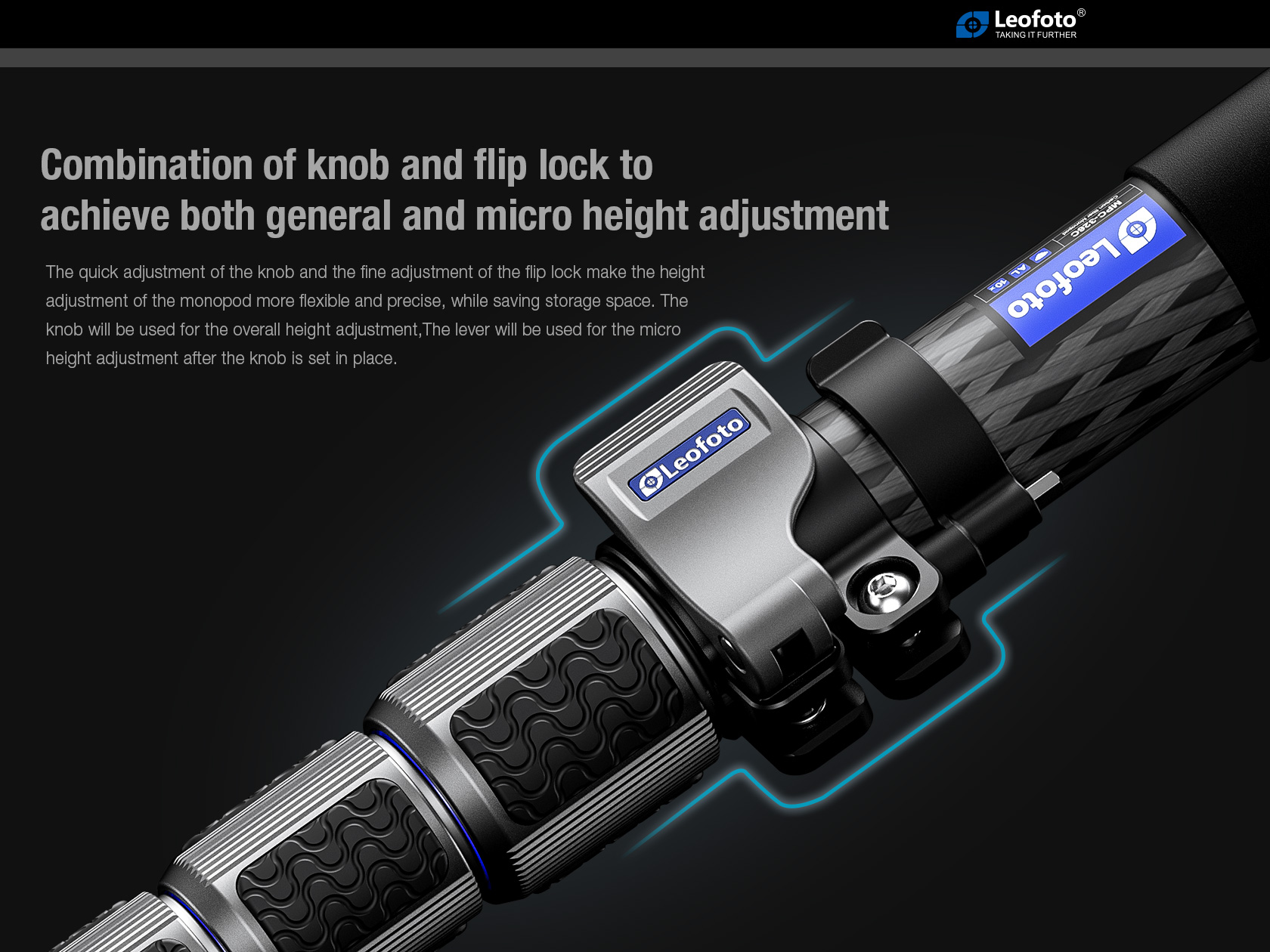 Effortless Adjustment: Features a fine-tuning flip lock mechanism for rapid overall height adjustment and a set of twist-lock knobs for precise micro-height adjustment. This dual system ensures flexible and precise height adjustments while optimizing storage space.