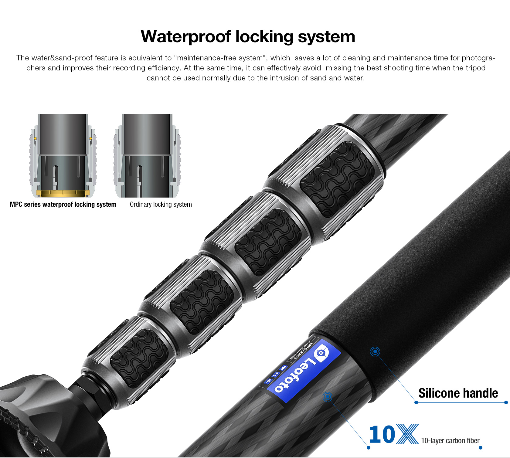 Rugged Reliability: Enhanced with the Poseidon series water-resistant knob locking system, ensuring stable support and durability in challenging environmental conditions.