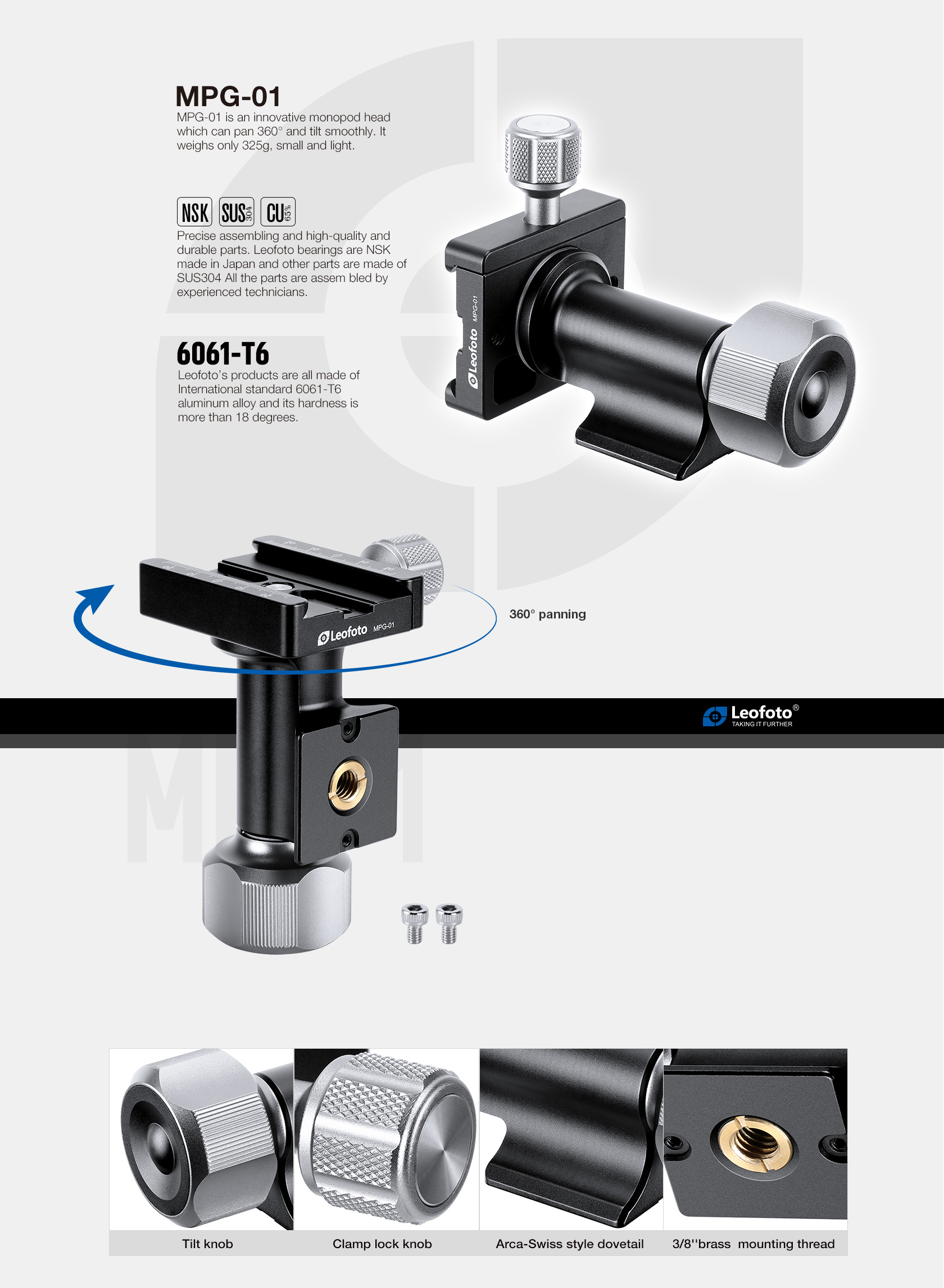 Leofoto MPG-01 Series Monopod Head Side Mount | 360° Tilting – MPG-01