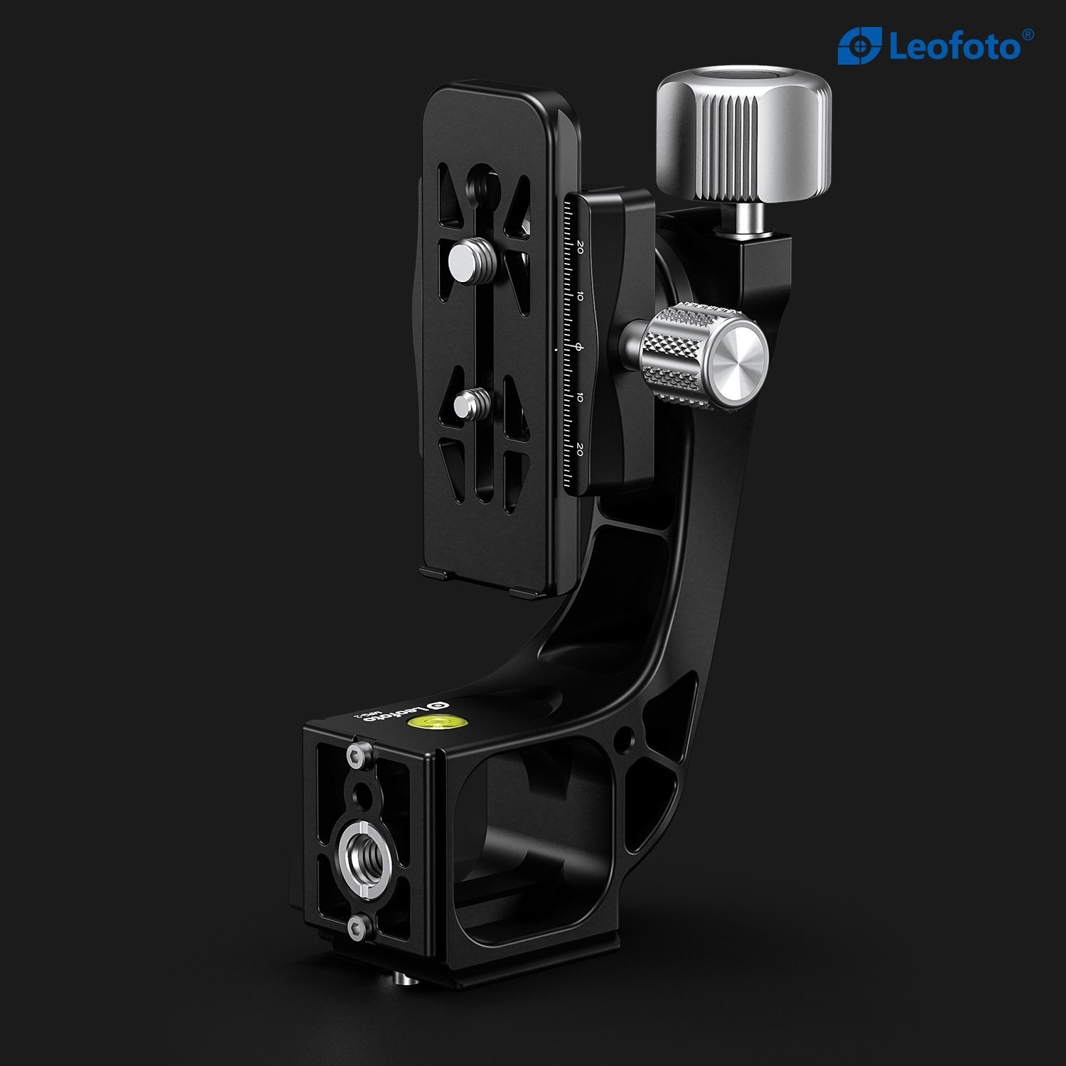 The Leofoto MPG-02/L Gimbal Attachment converts a standard ball head into a gimbal-style setup, crafted from CNC-machined aluminum for durability and precision. It features two Arca-type dovetail bases, a 3/8”-16 threaded mounting socket for broad tripod and monopod compatibility, and a redesigned Arca plate optimized for long lenses, supporting both 1/4” and 3/8” screws.