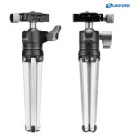 The Leofoto MT-01 Mini Tripod adjusts into different positions without any knobs or levers having to be used. Just set each leg to the desired angle individually. The compact single leg section tabletop tripod features a 1/4″-20 mounting screw and comes with a 3/8″-16 mounting socket.