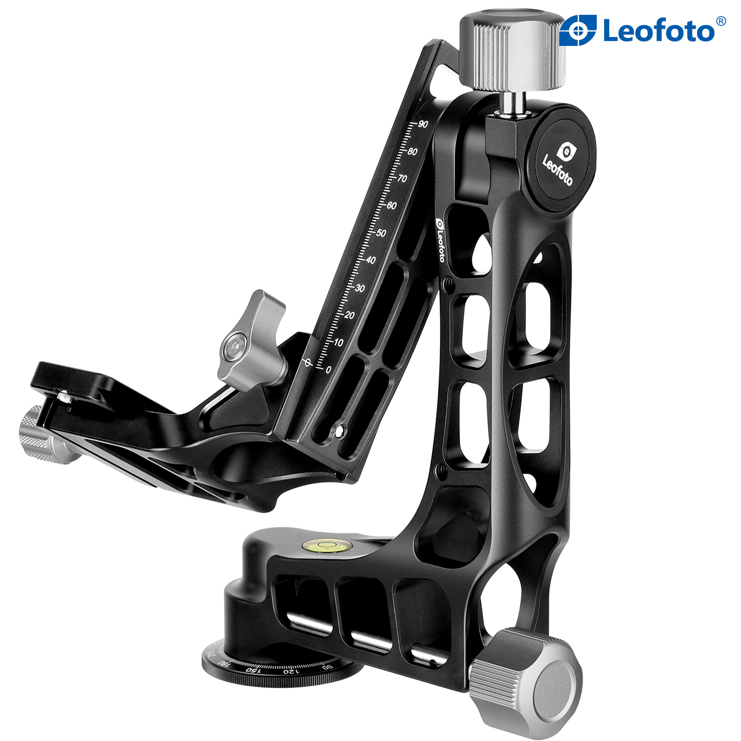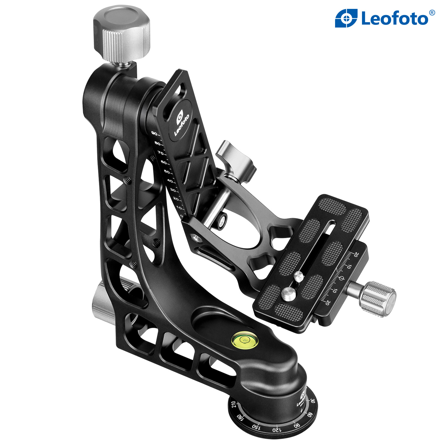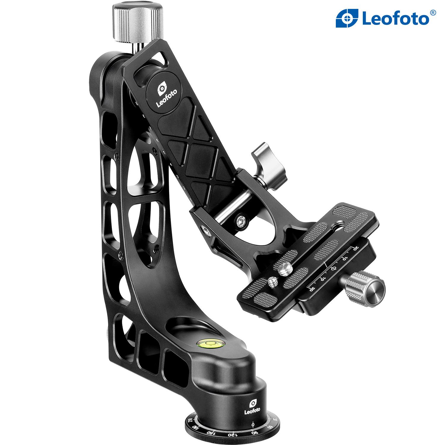 Travel lightly with the Leofoto PG-1 Gimbal Head constructed from T6061 aluminum. The PG-1 enables you to capture fast-moving subjects with a large and heavy telephoto lens that you otherwise could not do manually holding the lens. The arm swings back and forth and can be locked down at the required angle. The camera platform, which is Arca-type compatible, has height adjustability to help balance a telephoto lens on the head. Future setups can be easily repeated because of the printed scale on the side of the swing arm. Also, on the side of the arm are 1/4″-20 sockets for accessories. The gimbal head can easily hold up to 55 lb of equipment and rotate a full 360° while keeping the horizon straight using the bubble level at the base of the head.