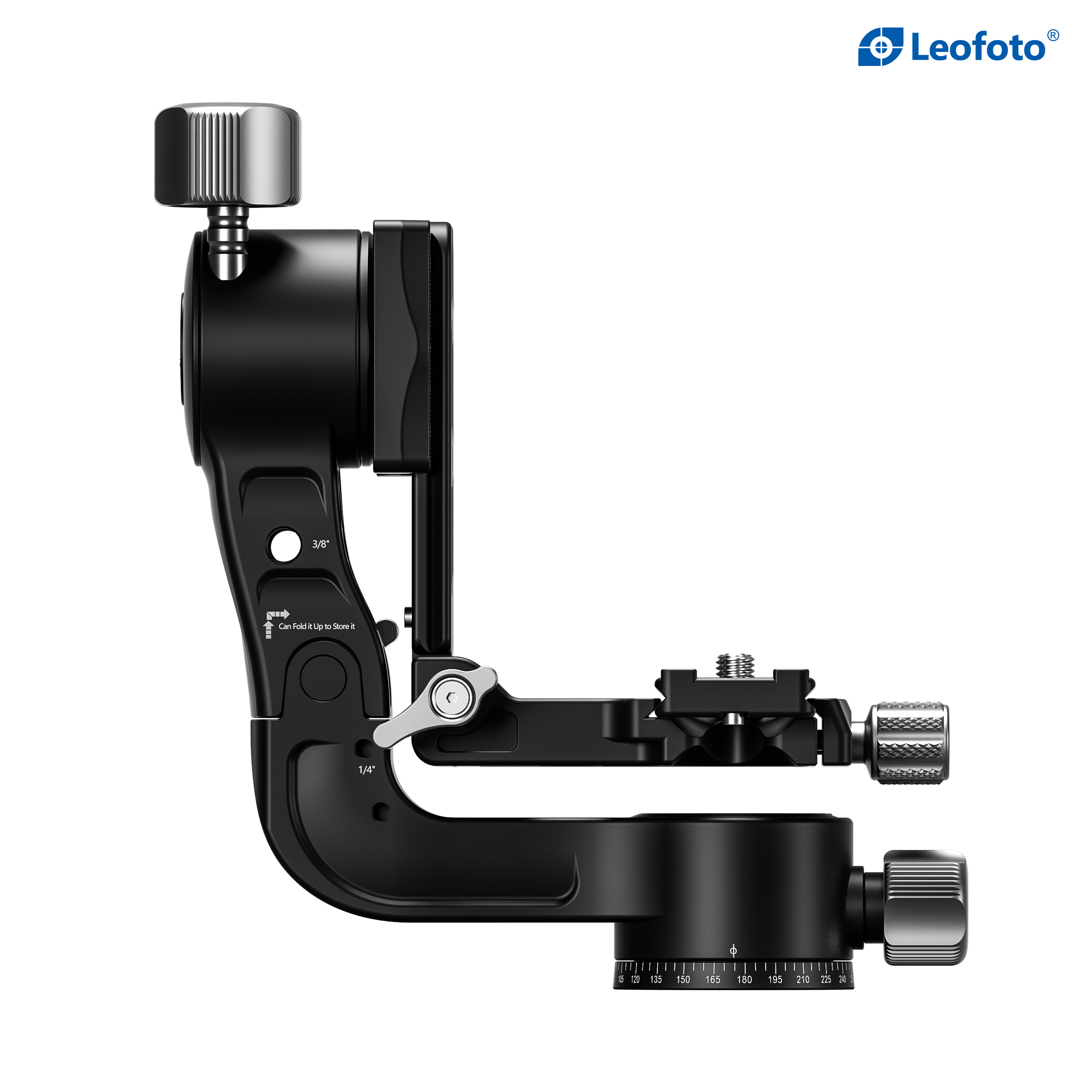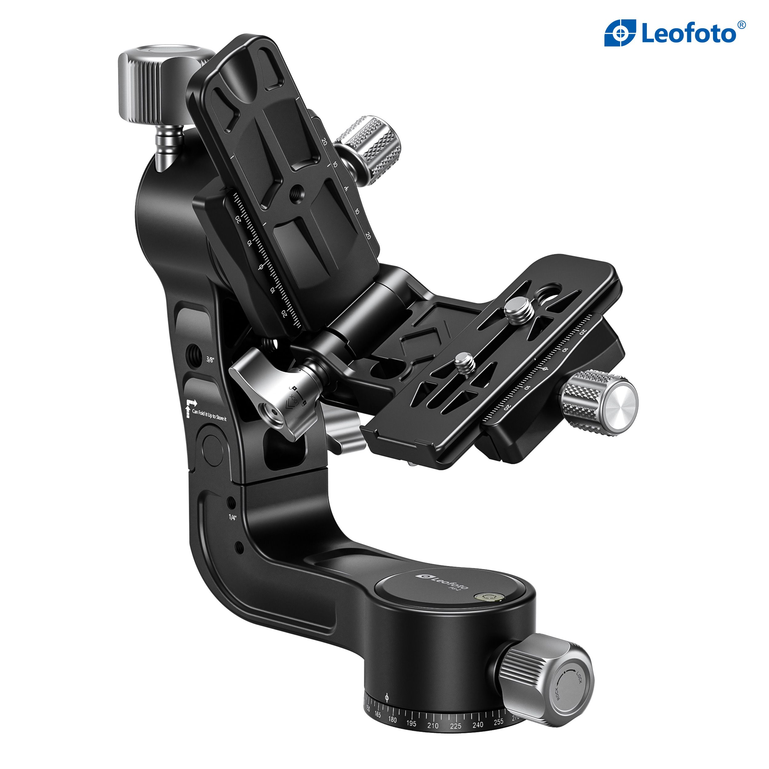 The Leofoto PG-2/PG-2L Folding Gimbal Head is constructed from T-6061 aluminum and hard anodized for maximum strength and durability. The PG-2 enables you to capture fast-moving subjects with a large and heavy telephoto lens that you otherwise could not do manually holding the lens. The arm swings back and forth and can be locked down at the required angle and the gimbal also has a bubble level on the base. The camera platform, which is Arca-type compatible, has height adjustability to help balance a telephoto lens on the head. Along the arm of the gimbal are a 3/8″ and two 1/4″ accessory sockets. The design of the PG-2/PG-2L allows for the gimbal to collapse for a more portable footprint, perfect for traveling when space is limited. The body has also been hollowed-out to optimize the weight to strength ratio.