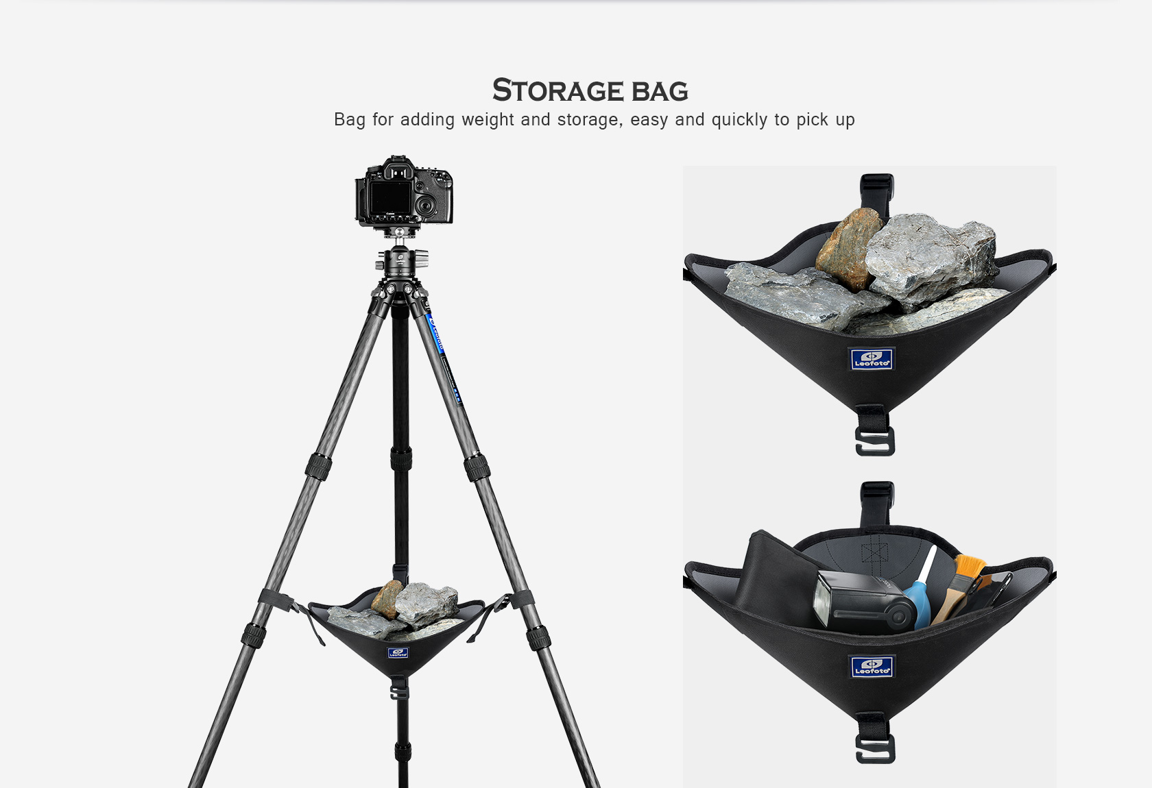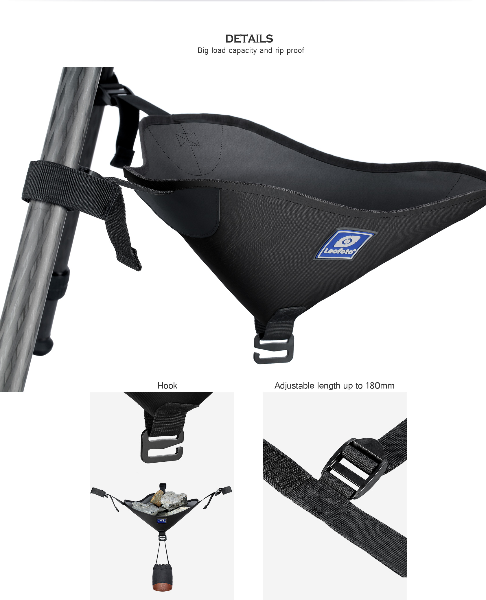 Leofoto RB-2 Universal Tripod Rock Bag Adjustable Straps with Velcro Loops Fit any Tripod Legs S Hook Underneath