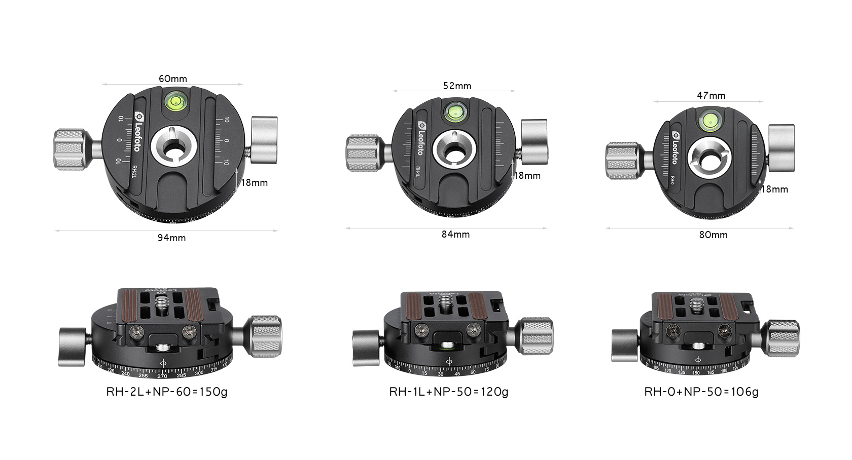 / Leofoto RH-2L+NP-60 RH-1L+NP-50 RH-0+NP-50 Panning Clamps