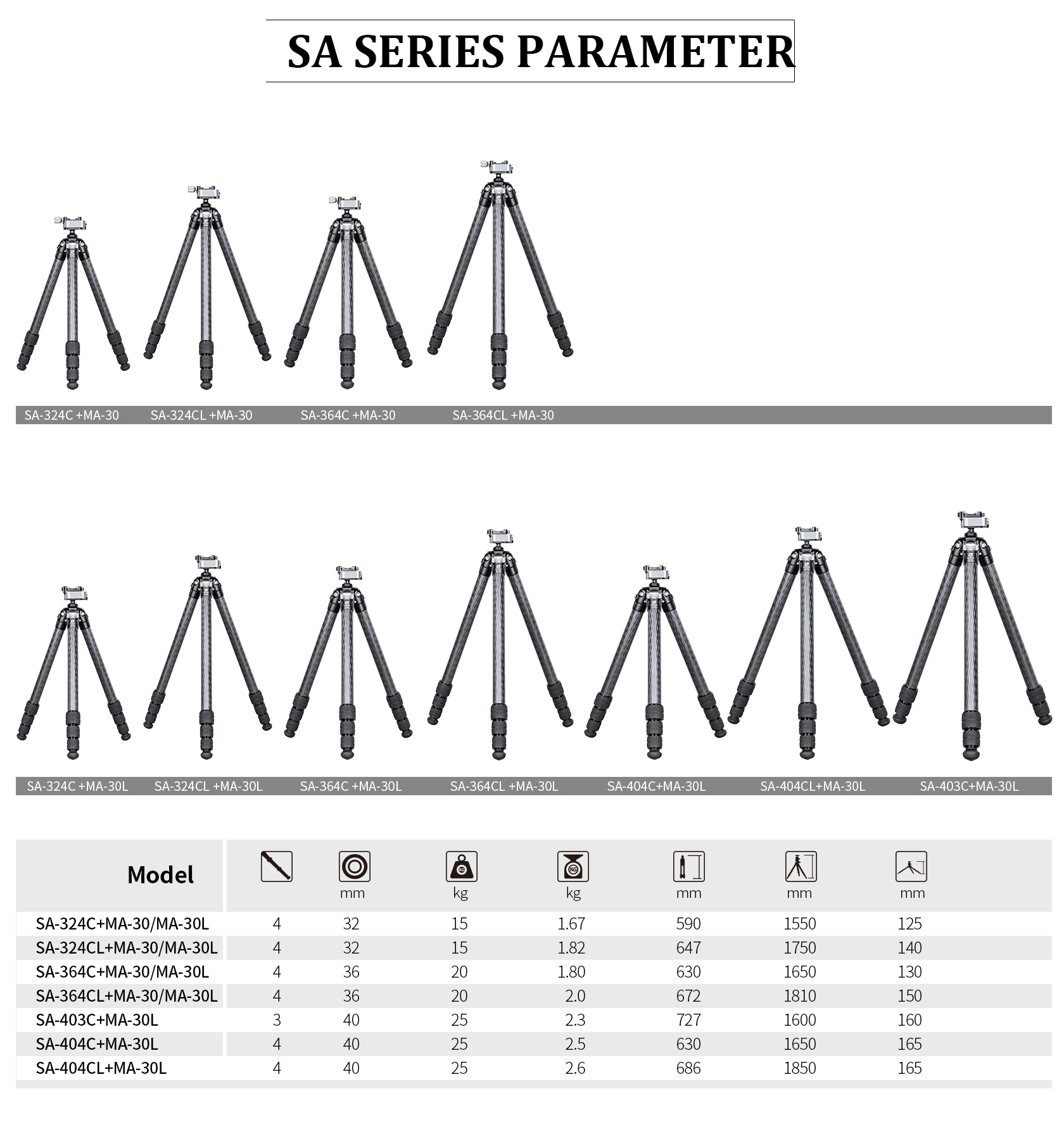 The Leofoto SA Series tripods are one of the most compact collapsed setups on the market with a perfectly balanced weight to strength ratio. The angle stop design has also been improved from the standard pull tab to a knurled bar which allows the user to adjust the angles with only one hand as opposed to two. The SA Series offers unparalleled versatility, built as a hunter’s companion who also enjoys long days on the range, but most requested by military, law enforcement, competitive shooters or those simply looking for one of the most compact and reliable shooting supports on the market. The SA Series tripods offer maximum rigidity, capable of supporting non-traditional shooting positions with a heavy load capacity. These tripods feature three angle stop positions to increase shooting capabilities and a compact design which maintains a small footprint, creating a tripod setup which is extremely easy to pack and carry on the go.
