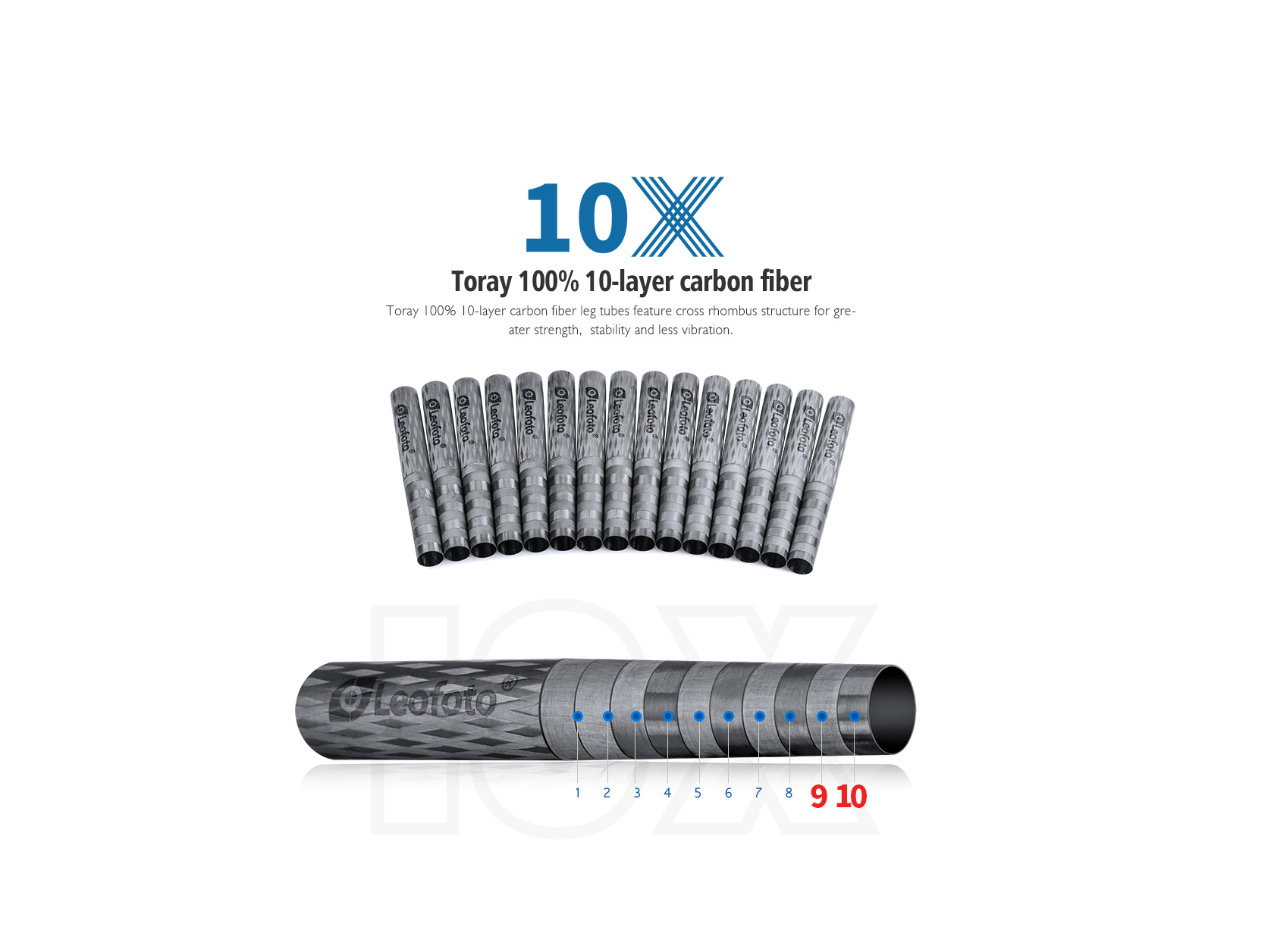 * Tripods must occasionally withstand tremendous bending and torsion loads. It is crucial that the leg angle stops and all other structural joints are well supported. Leofoto offset leg joints fully support the leg angle stops allowing loads to be transferred straight through the strongest members of the tripod. This also means the tripod is more compact when collapsed