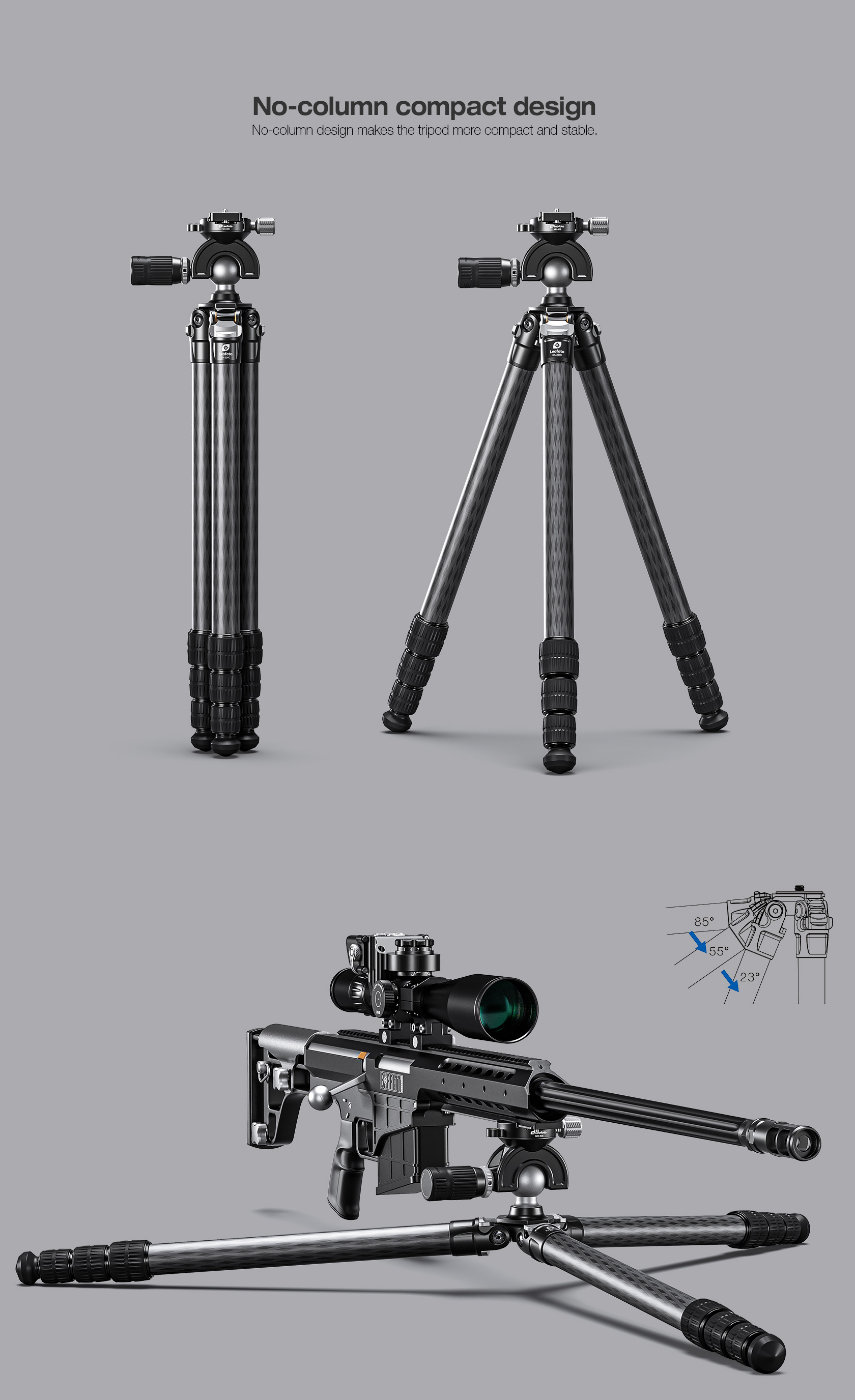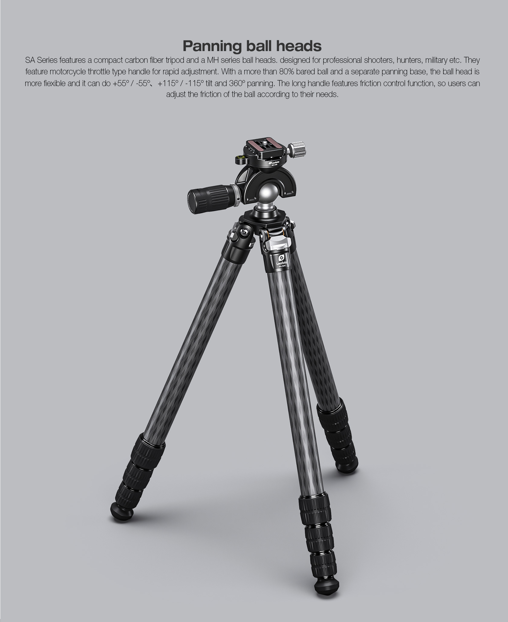 The Leofoto SA Series tripods are one of the most compact collapsed setups on the market with a perfectly balanced weight to strength ratio. The angle stop design has also been improved from the standard pull tab to a knurled bar which allows the user to adjust the angles with only one hand as opposed to two. The SA Series offers unparalleled versatility, built as a hunter’s companion who also enjoys long days on the range, but most requested by military, law enforcement, competitive shooters or those simply looking for one of the most compact and reliable shooting supports on the market. The SA Series tripods offer maximum rigidity, capable of supporting non-traditional shooting positions with a heavy load capacity. These tripods feature three angle stop positions to increase shooting capabilities and a compact design which maintains a small footprint, creating a tripod setup which is extremely easy to pack and carry on the go.
