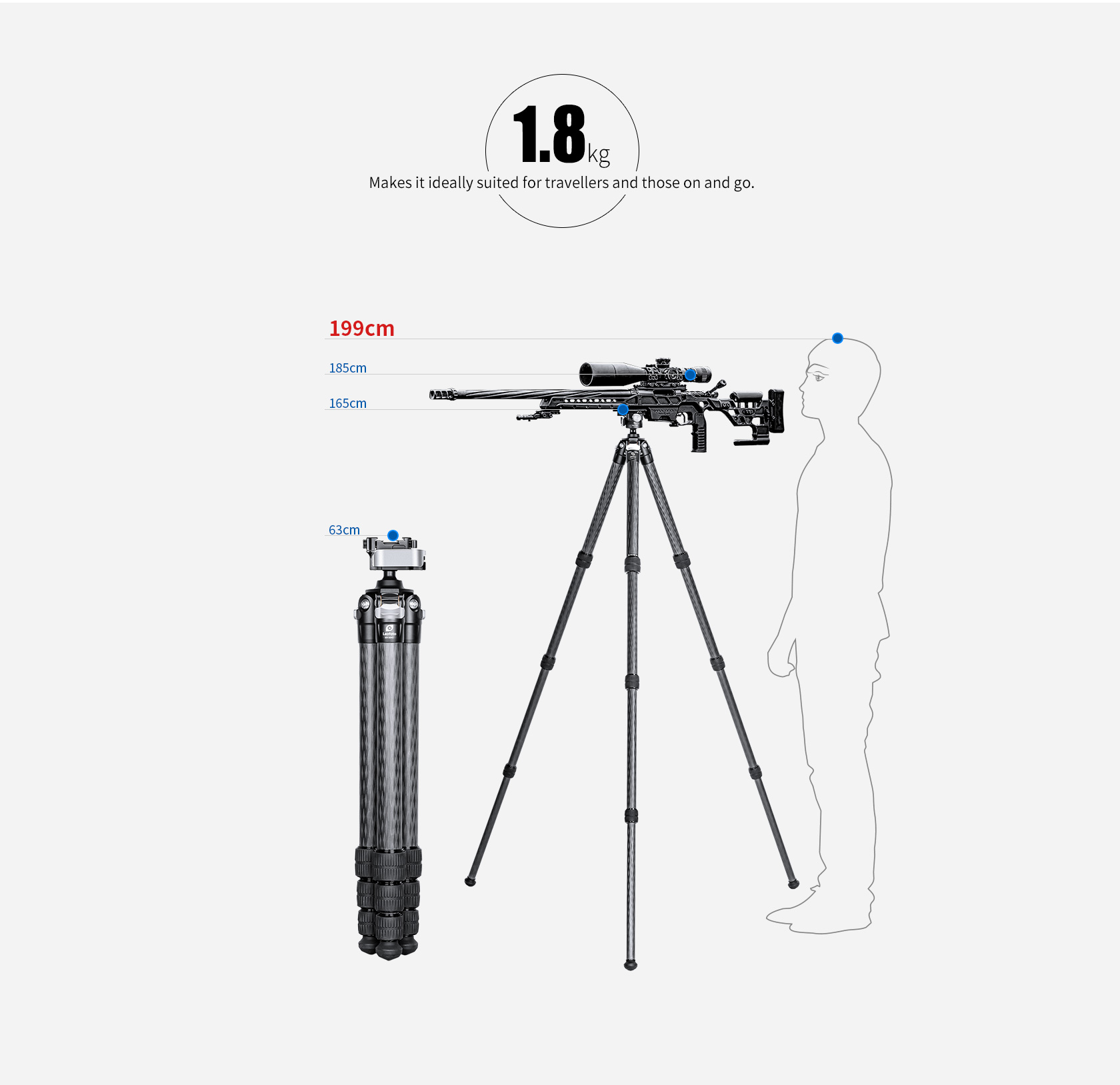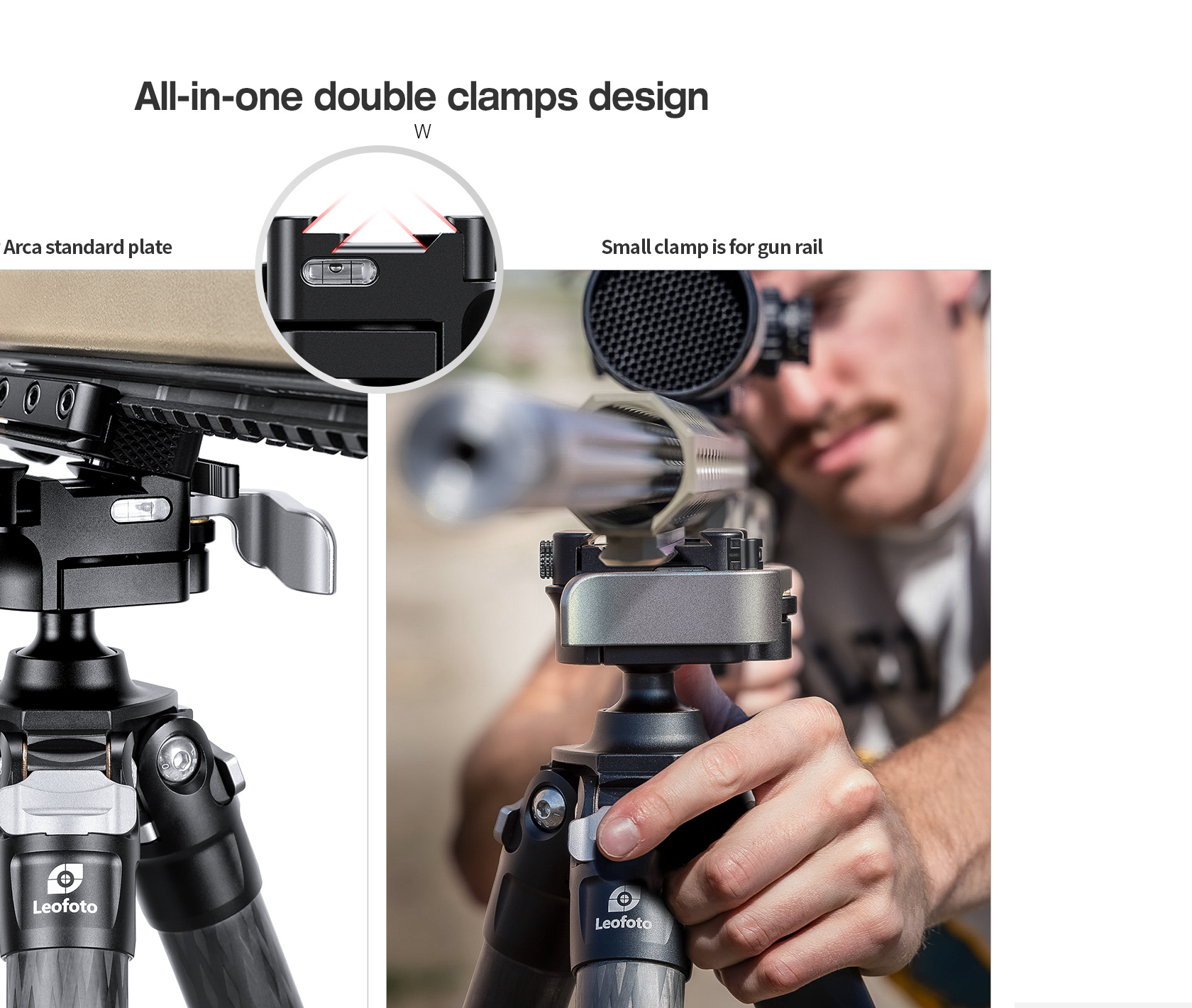 The Leofoto SA Series tripods are one of the most compact collapsed setups on the market with a perfectly balanced weight to strength ratio. The angle stop design has also been improved from the standard pull tab to a knurled bar which allows the user to adjust the angles with only one hand as opposed to two. The SA Series offers unparalleled versatility, built as a hunter’s companion who also enjoys long days on the range, but most requested by military, law enforcement, competitive shooters or those simply looking for one of the most compact and reliable shooting supports on the market. The SA Series tripods offer maximum rigidity, capable of supporting non-traditional shooting positions with a heavy load capacity. These tripods feature three angle stop positions to increase shooting capabilities and a compact design which maintains a small footprint, creating a tripod setup which is extremely easy to pack and carry on the go.